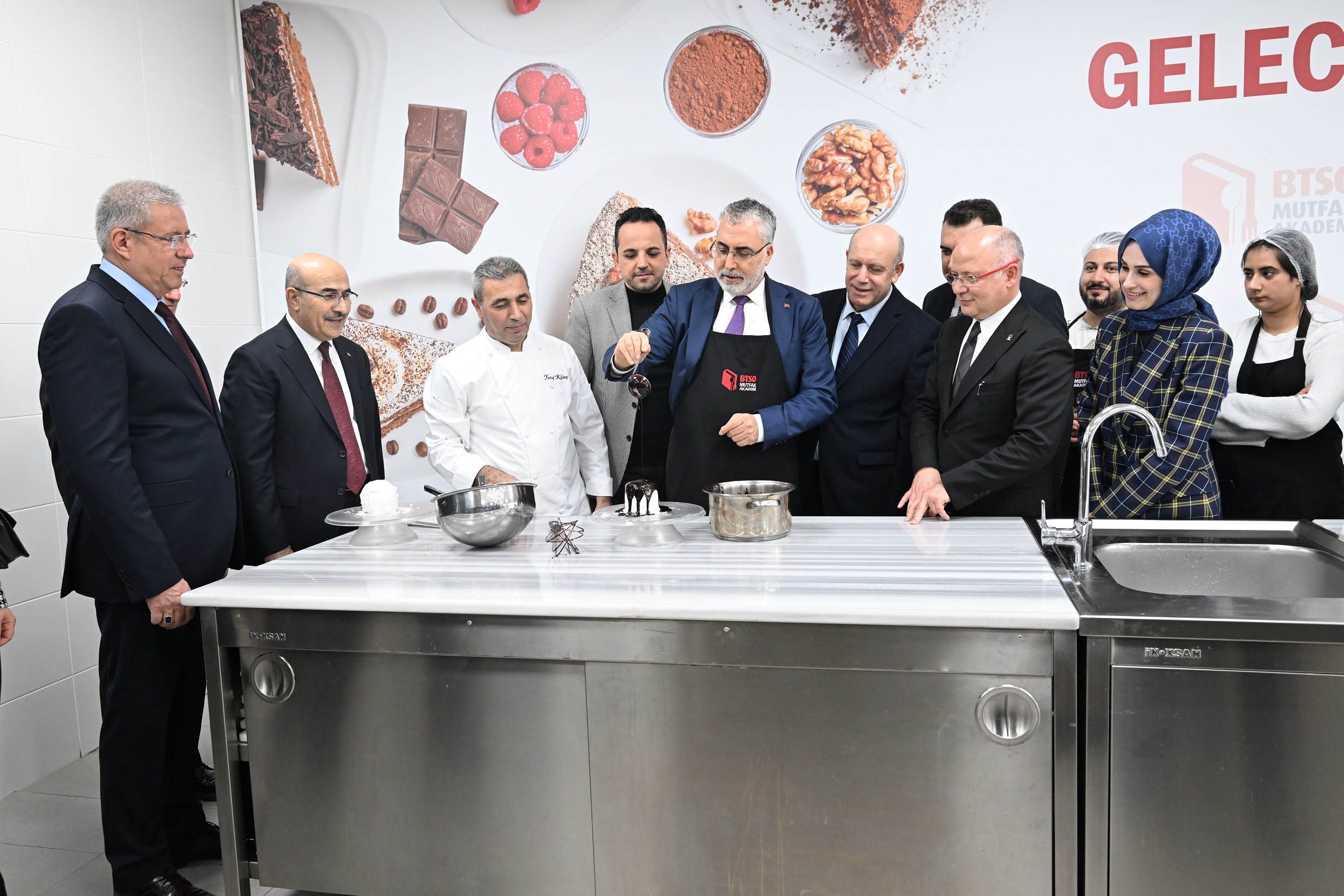 Çalışma ve Sosyal Güvenlik Bakanı Prof. Dr. Vedat Işıkhan, Vali Mahmut Demirtaş, AK Parti Bursa İl Başkanı Davut Gürkan ve beraberindeki heyetle birlikte BTSO’nun DOSAB’da bulunan BTSO Eğitim ve Teknoloji Kampüsü’nü ziyaret etti. Vedat Işıkhan, BTSO Başkan Yardımcısı İsmail Kuş, BTSO Yönetim Kurulu üyeleri Muhsin Koçaslan, Abidin Şakir Özen ve Meclis Başkan Yardımcısı Metin Şenyurt’un ev sahipliği yaptığı ziyarette, BUTEKOM, BUTGEM, BTSO MESYEB, Mutfak Akademi, Enerji Verimliliği Merkezi, Bursa Model Fabrika ve Yeni Nesil Araç Teknolojileri Mükemmeliyet Merkezi’nde incelemelerde bulundu. Bakan Işıkhan, ilk defa böylesine kapsamlı bir merkezi inceleme fırsatı bulduğunu söyledi. Tüm Türkiye için örnek alınabilecek bir kampüsle karşılaştıklarını ifade eden Işıkhan, “Gençlerimizin meslek edindirme sürecine böyle bir ortam hazırladıkları için başta BTSO yönetimi olmak üzere emeği geçen herkese teşekkür ediyorum.”