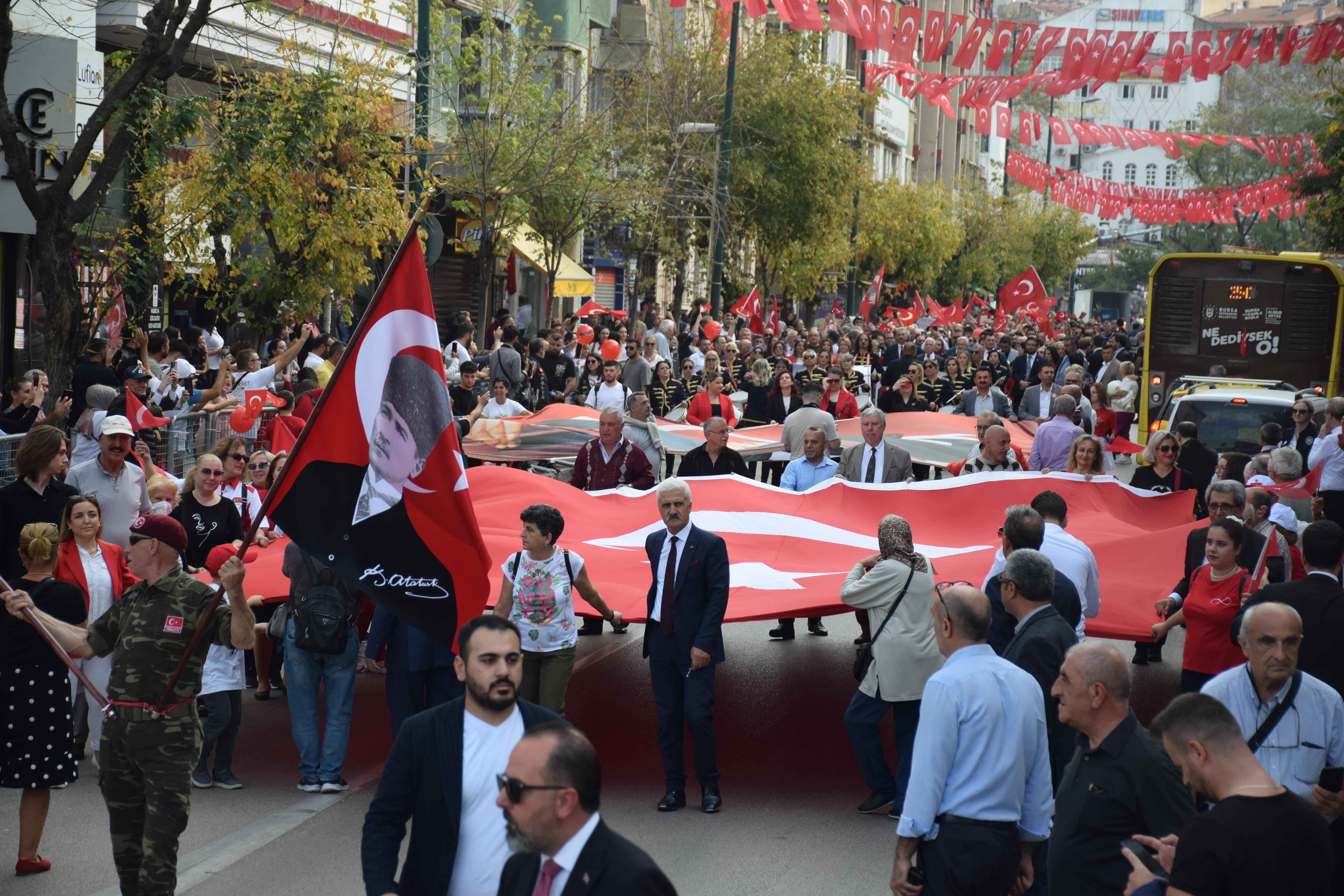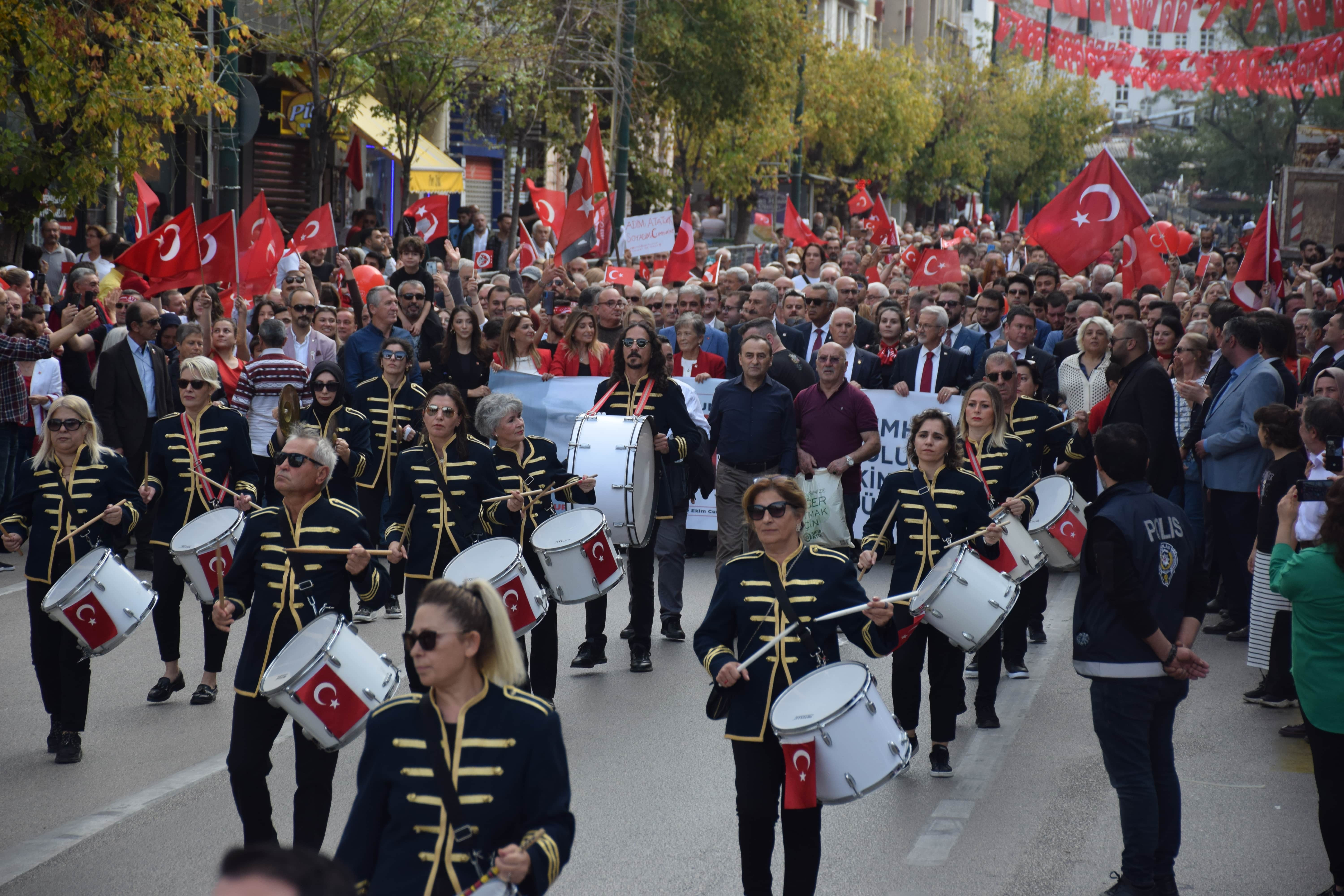 Cumhuriyet Halk Partisi Bursa İl Örgütü Cumhuriyetimizin 100’üncü yılını coşkuyla kutladı. Setbaşı’ndan Heykel Cumhuriyet Anıtı’na kadar gerçekleştirilen yürüyüşe İl Başkanı Nihat Yeşiltaş, CHP Bursa Milletvekili Kayıhan Pala, Bursa Büyükşehir Belediye Başkan Adayı Mustafa Bozbey, Nilüfer Belediye Başkanı Turgay Erdem, İl Yönetim Kurulu Üyeleri, ilçe başkanları ve yönetimleri, Kadın ve Gençlik Kolları Başkanları ve yönetimleri katılırken binlerce Bursalıyla birlikte büyük coşku yaşandı.Cumhuriyet Halk Partisi Bursa İl Başkanlığı, Cumhuriyetimizin 100’üncü yılını büyük bir coşkuyla kutladı. Setbaşı’nda binlerce Bursalı ve Cumhuriyet Halk Partisi Bursa İl Örgütü’nün buluşmasıyla başlayan yürüyüş Heykel Atatürk Anıtı’nda sonladı. Atatürk’ün manevi huzurunda çelenk sunumu gerçekleştirildikten sonra kürsüye gelen CHP Bursa İl Başkanı Nihat Yeşiltaş yürüyüşteki coşkuya dikkat çekti.İl Başkanı Yeşiltaş, “Bu topraklar 100 yıl önce, tarihin gördüğü en büyük devrimlerden birine şahit oldu. Egemenlik saraylardan alınıp yoksul Anadolu insanına verildi. Cumhuriyet bir inançtır. Bu ülkeyi İngilizlere teslim edip, İngiliz gemileriyle kaçanların değil, Kartal İstimbotunun güvertesinden düşman gemilerine bakıp, Geldikleri gibi giderler diyen bir yüreğin inancıdır” diye konuştu.Yeşiltaş’ın konuşmasından öne çıkanlar şu şekilde:“Cumhuriyet, sarayın idam fetvaları Yunan uçaklarından halka atılırken, Kuvayi Milliye'ye karşı hilafet orduları kurulurken, “Ya istiklal ya ölüm” diyen Ulu Önder Mustafa Kemal Atatürk'ün inancıdır.Cumhuriyet, vatanı için ölümleri göze almış bir dâhinin, yüreğinde büyüttüğü bir inançtı. İnanıyordu. Çünkü yapılacak iş çoktu. Bu ülkede 40 bin köy vardı. 35 bininde okul yoktu. Nüfusun sadece yüzde 5’i okuma yazma biliyordu. Halk; veremle, vebayla mücadele ediyor, her iki bebekten biri ölüyordu. Ortalama ömür 40 yıldı. Koca ülkede sadece 550 doktor,4 hemşire vardı. Madenler ve demiryolları yabancıların elindeydi. Kadınlara eğitim hakkı yoktu, miras hakkı yoktu, seçme-seçilme hakkı yoktu. Cumhuriyet devrimleri sayesinde yorgun bir halk ayağa kalktı, kulluk bitti ve modern bir ülke kuruldu. Cumhuriyet bir destandır. Yüzyıllarca virane kalmış Anadolu’yu, tren sesleriyle, fabrika düdükleriyle inleten destanın adıdır. Köylüyü köle yapan düzeni yıkıp, köylüye milletin efendisi diyenlerin, kadını insan yerine koymayan saltanatı yıkıp, bu dünya üzerindeki her şey, kadının eseridir diyenlerin destanıdır. Yoksul köylülerin, işçilerin, kadınların, yurtsever aydınların destanıdır. Kaderine terkedilmiş Anadolu halkını vebadan, sıtmadan kurtaran doktorların destanıdır. Yalnız başına dağ köylerine gidip, tek katlı köy okullarında, bir sobanın sıcaklığında, bu ülkenin güzel yarınları için mücadele eden genç öğretmenlerin destanıdır”“CUMHURİYETSİZ VATAN ESİRLER YUVASIDIR”Yeşiltaş konuşmasına şu şekilde devam etti:“Bundan tam 89 yıl önce, 29 Ekim 1934 yılında, şenlik yerine dönmüş bir Bursa köyünde, köy öğretmeni kürsüye çıktı ve kendisine bakan köy halkına şunu söyledi. Cumhuriyetsiz millet esir kalabalığı Cumhuriyetsiz vatan, esirler yuvasıdır! 89 yıl önce, Bursa’nın bir köyünde yankılanan bu sözü bugün daha iyi anlamalıyız.Cumhuriyetin ilanıyla birlikte ayrıcalığını kaybetmiş olanların, Cumhuriyete kini hiç bitmedi. Bu sebepten dolayı, bugün, bu güzel ülkeyi esirler yuvası haline getirmek isteyenler var. Açık bir şekilde bir yol ayrımındayız. Türkiye, ya gerici, cumhuriyet düşmanı bir anlayışın egemenliğine girip esir düşecek, ya da bizler, mücadeleye devam edip Cumhuriyeti köklerinden yeniden canlandıracağız”“YEPYENİ BİR SAYFA AÇIYORUZ”Yeşiltaş ,“4 kardeşini fakirlik yüzünden toprağa veren, 7 yaşında yetim kalan mavi gözlü bir çocuk, nasıl daha sonra yedi düveli yenip, saltanatlar devirdiyse, bugün bu ülkenin yoksulları, bu ülkenin ezilenleri, bu ülkenin aydınları, onun kurduğu Cumhuriyeti tekrar yeşertecek! Hiç kimse umutsuzluğa kapılmasın. Bizler mücadele kitabımızda yepyeni bir sayfa açıyoruz. Bu ülkenin yoksulları ve cumhuriyet sevdalıları birleşecek, milletin bağımsızlığını yine milletim azim ve kararı kurtaracak. Bu ülkenin aydınlık geleceği için, bu ülkenin emekçi ve onurlu halkı için mücadele edip, Cumhuriyeti gerçek anlamına tekrar kavuşturacağız” dedi."KİRAZLIYAYLA SANATORYUMUNU EMPERYALİST TEKELE HEDİYE ETTİLER"Yeşiltaş, Cumhuriyet düşmanı ve saltanat meraklılarının Cumhuriyet kazanımlarını yağmaladığını vurgulayarak konuşmasını şu sözlerle noktaladı:“Verem hastaları için açılan Kirazlıyayla Sanatoryumunu, binbir zorlukla bu ülkeden kovduğumuz Fransızlara sattılar. Emperyalist bir tekele hediye ettiler. Onlar birkaç gün sonra, o oteli gülerek açmadan önce, bizler buradan Atamızın huzurunda ona söz veriyoruz.Önce saltanat düşkünlerinin oyuncağı haline düşmüş dediğin Bursa'yı, sonra da uğrana ölümleri göze aldığın bu vatanı bezirgan saltanatından kurtaracağız.Bu halktan çalınan ne varsa, hepsini teker teker geri alacağız.Selam olsun Cumhuriyet sevdalılarına!Selam olsun aydınlık yarınlara!Selam olsun ikinci yüzyıla!Yaşasın Cumhuriyet! Yaşasın Laik Türkiye Cumhuriyeti!Nice yüzyıllara dostlar ”