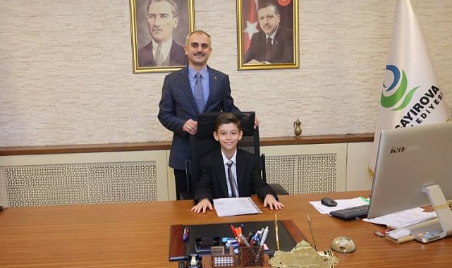 Çayırova Belediye Başkanı Bünyamin Çiftçi, 23 Nisan Ulusal Egemenlik ve Çocuk Bayramı vesilesiyle koltuğunu Ahmet Yesevi İlkokulu 4. Sınıf öğrencisi Deniz Tuna Öztürk'e devretti. Minik Başkan Öztürk, makama geçtikten sonra 3 proje için talimatlarını iletti.KOCAELİ (İGFA) - 23 Nisan Ulusal Egemenlik ve Çocuk Bayramı kapsamında, Çayırova Belediye Başkanı Bünyamin Çiftçi, koltuğunu Ahmet Yesevi İlkokulu 4. Sınıf öğrencisi Deniz Tuna Öztürk'e devretti. Başkanlık makamında gerçekleşen devir teslim programında Minik Başkan Öztürk'e öğretmenleri Adnan Özkan ve Ayşe Öznur Demir de eşlik etti. Çayırova'nın minik başkanını karşılayan Bünyamin Çiftçi, Deniz Tuna Öztürk ve tüm çocukların 23 Nisan Ulusal Egemenlik ve Çocuk Bayramı'nı tebrik etti ve koltuğunu Öztürk'e devretti. Başkanlık makamına oturduktan sonra kısa bir selamlama konuşması yapan Çayırova'nın minik başkanı Öztürk, şunları dile getirdi;"EN İÇTEN DİLEKLERİMLE KUTLUYORUM""23 Nisan sadece bir meclisin açılışı değil, bir ülkenin kaderinin değiştiği bir gündür. Hepimizin burada Türkiye Büyük Millet Meclisimizin açılışının 104. yılını coşkuyla kutladığımız bu günde başta Gazi Mustafa Kemal Atatürk olmak üzere aziz şehitlerimizi ve kahraman gazilerimiz rahmet ve minnetle anıyor, hayatımıza neşe katan tüm çocuklarımızın 23 Nisan Ulusal Egemenlik ve Çocuk Bayramı'nı en içten dileklerimle kutluyorum."MİNİK BAŞKANDAN 3 PROJE23 Nisan'ın cumhuriyetimizin en özel günlerinden biri olduğunu dile getiren Başkan Çiftçi, başta Cumhuriyetimizin Kurucusu Gazi Mustafa Kemal Atatürk olmak üzere, tüm şehitlerimizi ve gazilerimizi minnetle andıklarını dile getirirken, 23 Nisan Ulusal Egemenlik ve Çocuk Bayramı'nı bir kez daha kutladı. Çiftçi, Minik Başkan Öztürk'e direktiflerini sorarken, Minik Başkan Öztürk ise, 'Engelsiz Yaşam' sloganı ile özel çocukların eğitime katılımı, çocukların ülkemizin tarihini daha iyi öğrenebilmesi adına müzelere götürülmesi ve son olarak da çocuklar için bilim atölyelerinin kurulması için 3 ana başlıkta talimatlarını iletti.PROJELERE TAM NOTÇayırova Belediye Başkanı Bünyamin Çiftçi ise, yakın zamanda hizmete açtıkları Engelliler Merkezi ve merkez bünyesinde kurulan Özel Eğitim Okulu ile Deniz Tuna Öztürk'ün birinci projesini hayata geçirdiklerini, diğer iki projeyi de Çayırovalı çocuklar için daha da güzelleştirerek gerçekleştireceklerini açıkladı ve bu projeleri için Deniz Tuna Öztürk'e teşekkürlerini iletti. Ziyaret günün anısına çekilen hatıra fotoğrafıyla sona erdi.