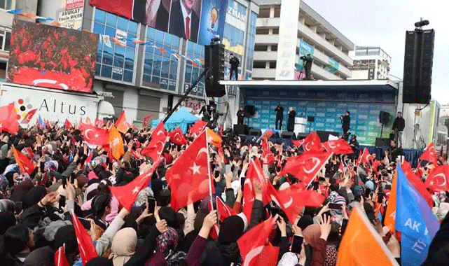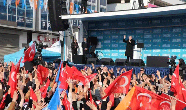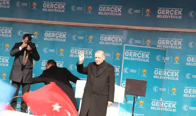 Cumhurbaşkanı Erdoğan, alanda asılı olan "Mutfakta konuşanların sonunu gördük, ama balkondan konuşanlar çok şükür karşımızda" pankartına dikkat çekerek şunları söyledi: "Rakiplerimiz, kazanmak veya kaybettirmek için her türlü hileyi denediler. Ancak bu milletin zekasıyla alay ettiler. Paraların da devreye girmesiyle oyunları iyice kirletildi. Bağırmak, çağırmak, yalan söylemek, arsızca saldırmak, kibirle milleti aşağılamak... Bütün bunlarla kendi kirlerini temizleyemezler. Milletimiz, bu sinsi ve kirli oyunların hesabını 31 Mart'ta sandıkta soracaktır. Utanmaz yüzlerin karşısında milli iradeyi gösterecek, milli irade tokadını vuracaktır. Bugün burada milli irade tokadının ilk seslerini duyuralım." dedi.