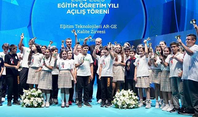 Cumhurbaşkanı Recep Tayyip Erdoğan ve Millî Eğitim Bakanı Yusuf Tekin, İstanbul'da gerçekleştirilen 2024-2025 Eğitim Öğretim Yılı Açılış Töreni ve Eğitim Teknolojileri AR-GE ve Kalite Zirvesi'ne (ETAK 24) katıldı.İSTANBUL (İGFA) - Cumhurbaşkanı Recep Tayyip Erdoğan, İstanbul Lütfi Kırdar Kongre ve Sergi Sarayı'nda gerçekleştirilen "2024-2025 Eğitim Öğretim Yılı Açılış Töreni" ile "Eğitim Teknolojileri AR-GE ve Kalite Zirvesi"ndeki konuşmasında, 5'incisi düzenlenen uluslararası zirveye katılmaktan memnuniyet duyduğunu söyledi.Akademik çalışmaları tebliğleri, tecrübe ve birikimleriyle dinleyicileri aydınlatacak tüm katılımcılara şükranlarını sunduğunu belirten Erdoğan, "2024-2025 eğitim öğretim yılının öğrencilerimiz, öğretmenlerimiz ve eğitim camiamız için şimdiden hayırlı olmasını diliyorum. Pazartesi günü okul öncesi ve ilkokul birinci sınıf öğrencilerimiz için düzenlediğimiz uyum programlarıyla yeni eğitim öğretim yılına başladık. Diğer öğrencilerimiz ise 9 Eylül Pazartesi günü okullarına kavuşuyorlar. Yaklaşık üç aylık yaz tatilinin ardından yüreklerinde okul heyecanı taşıyan tüm yavrularımızı sevgiyle kucaklıyor, Rabb'imden hepsine üstün başarılar niyaz ediyorum." diye konuştu.Erdoğan; Anadolu'nun dört bir yanında, tüm il ve ilçelerde, köylerden kasabalara kadar vatanın her köşesinde maarifi yüceltmek için emek veren eğitim çalışanlarını da selamladı.Türkiye'yi yüceltmek ve ilelebet payidar kılma mücadelede canlarını ortaya koyan kesimlerden birinin de öğretmenler olduğunu ifade eden Cumhurbaşkanı Erdoğan, "Şehit öğretmenlerimizi özellikle de Necmettin Yılmaz ve Aybüke Yalçın gibi genç yaşta terör örgütlerinin hain saldırılarıyla bizden koparılan eğitim neferlerimizi rahmetle yad ediyorum. Aynı şekilde 6 Şubat depremlerinde hayatını kaybeden öğretmen ve öğrencilerimizi de unutmayacağımızı, hatıralarını daima yaşatacağımızı bir kez daha ifade ediyorum. Rabb'im hepsinin ruhunu şad, mekânlarını cennet eylesin diyorum" dedi.