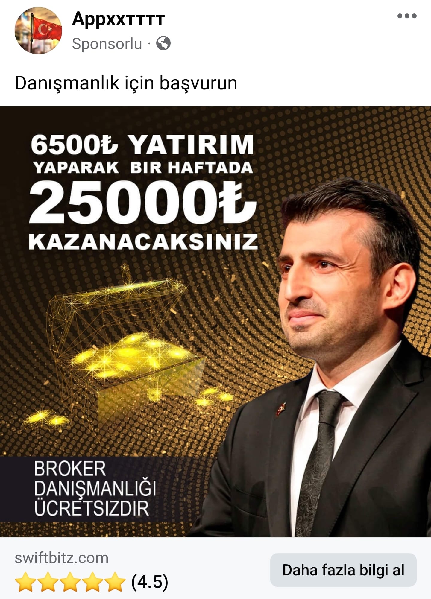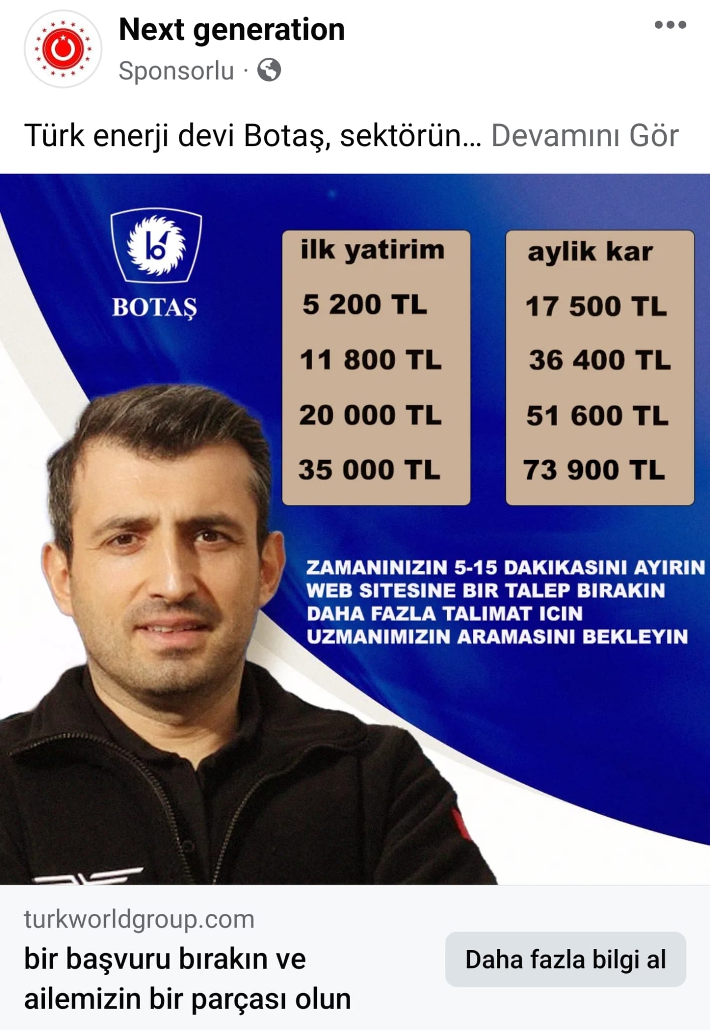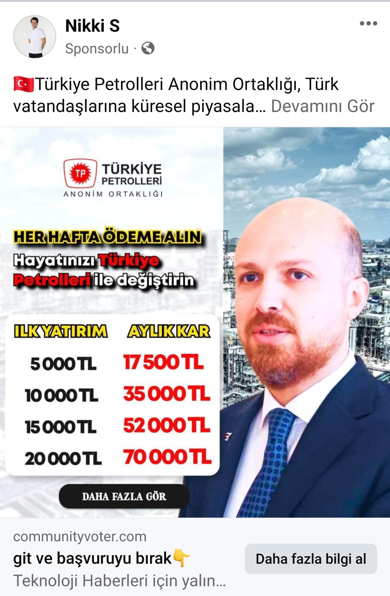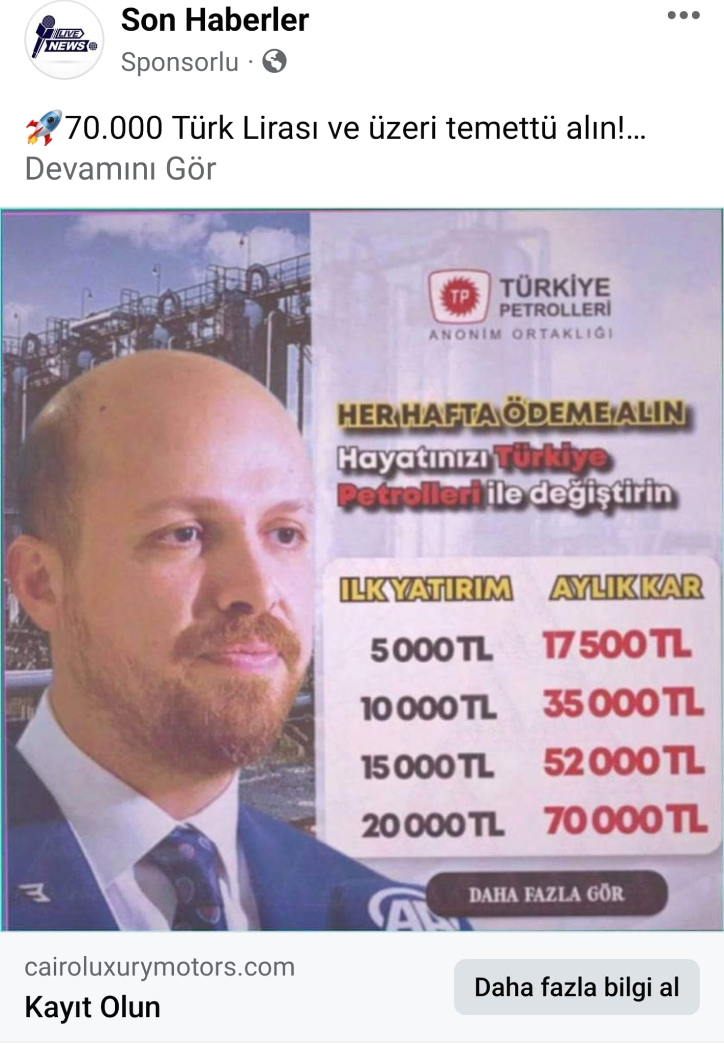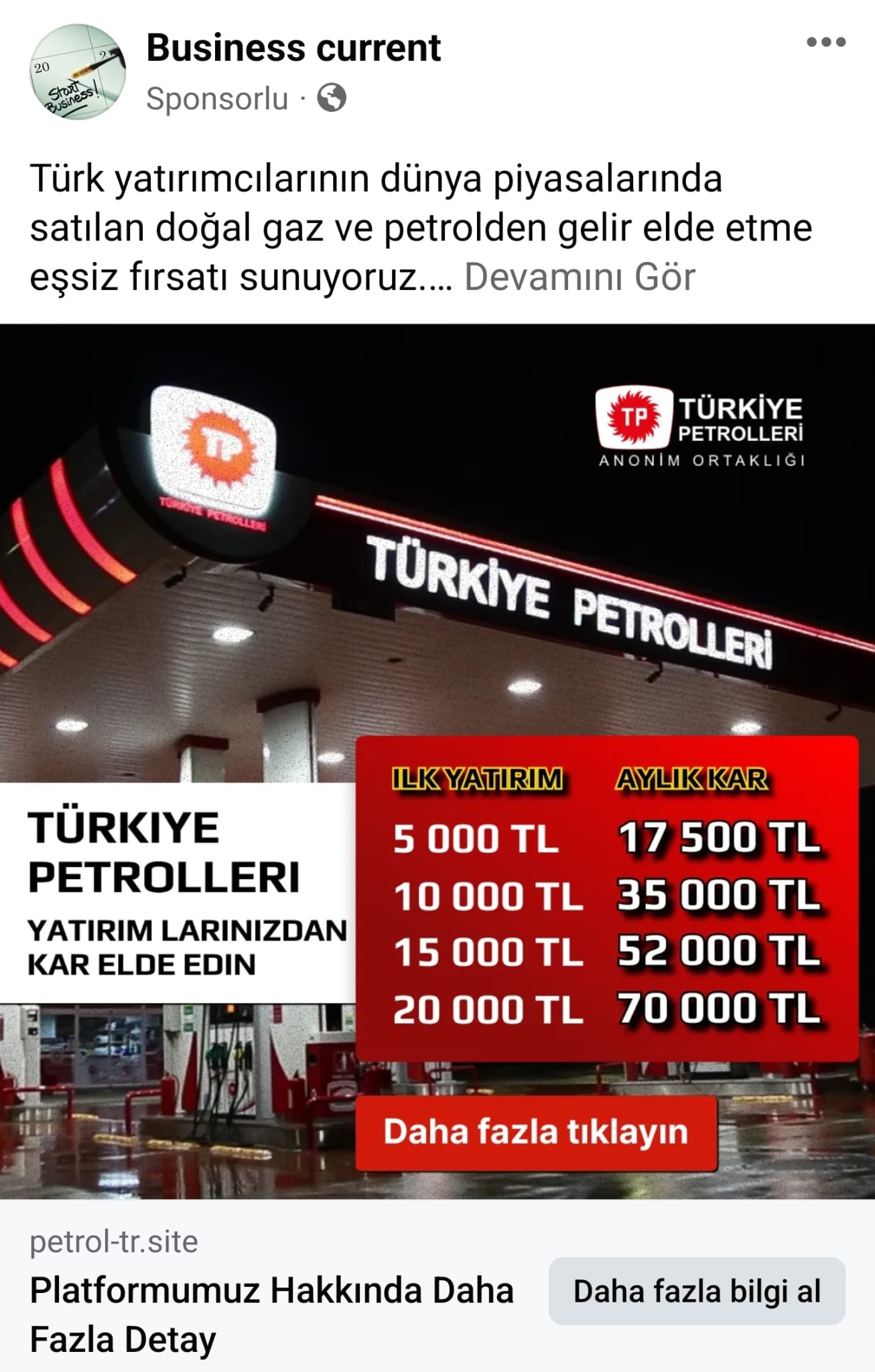 Bu dolandırıcılar halkı yatırım fırsatları adı altında kandırıyor.Bir çok paylaşımda ilk yatırım 5.000 TL, sonrasında her ay 17,500 TL diye reklamlar var.Halkı dolandırmaya çalışan sosyal medya çetesinin yayınları ve paylaşımları neden durdurulmuyor sorusu akıllara geliyor.Herhangi bir siyasi konu veya halkın tamamının bilgilenmesinin önüne geçilmesi istenen her konuda, yayın yasağı ve kapatma kararı verilirken, bu tür sahte paylaşımların önüne neden hemen geçilmiyor sorusu halkın dilinde dolaşıyor.Türkiye Kumar Reklamları Cenneti