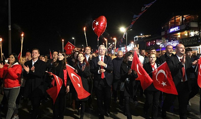 Saat 19.00’da İskele Meydanı’ndan başlayan “Biz Cumhuriyetiz Yürüyüşü” ise, bir halk seline dönüştü. Kırmızı-beyaz renklerle dolan sahil bandında, gençler, çocuklar ve yaşlılar ellerinde bayraklarla yürüdü. Marşlar eşliğinde süren yürüyüşün ardından meydanda düzenlenen “Adımlarının İzindeyiz- Cumhuriyet Valsi” renkli görüntülere sahne oldu.