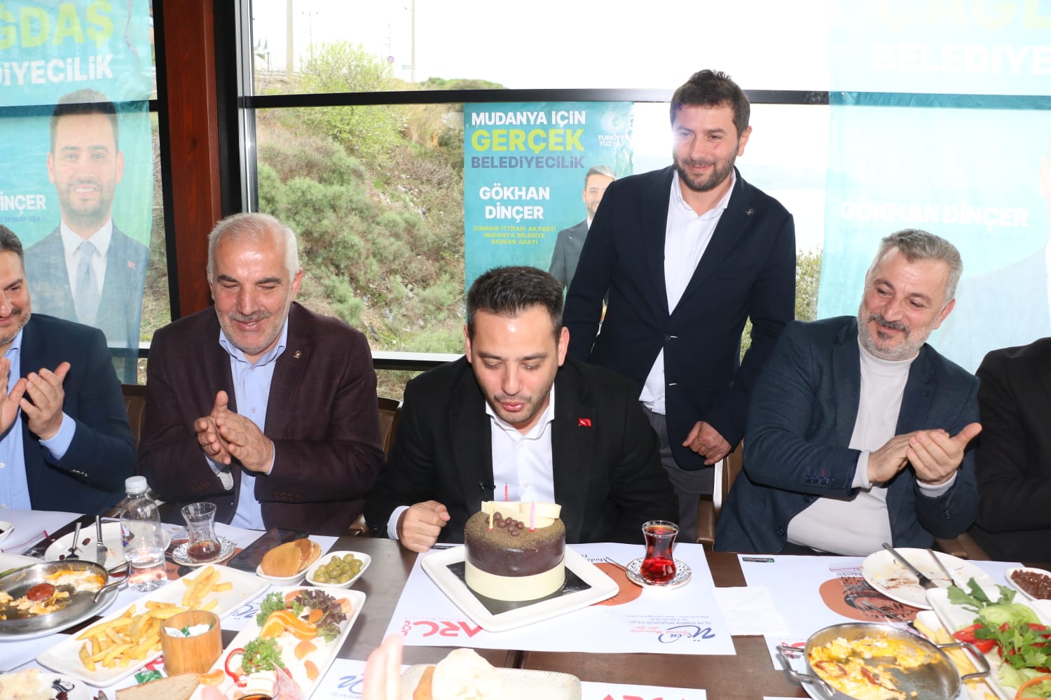 Bu arada seçim çalışmaları nedeniyle Gökhan Dinçer'e eşi Özlem Dinçer ve oğlu Burak Dinçer seçim ofisinde doğumgünü sürprizi yaparken, biraraya geldiği AK Parti il ile ilçe mevcut ve eski gençlik kolları başkanları ile antrenmanlarını izlemeye gittiği Bursa Büyükşehir Belediyespor Kulübü Hentbol sporcuları doğumgünü pastası keserek Dinçer'in yeni yaşını kutladılar.