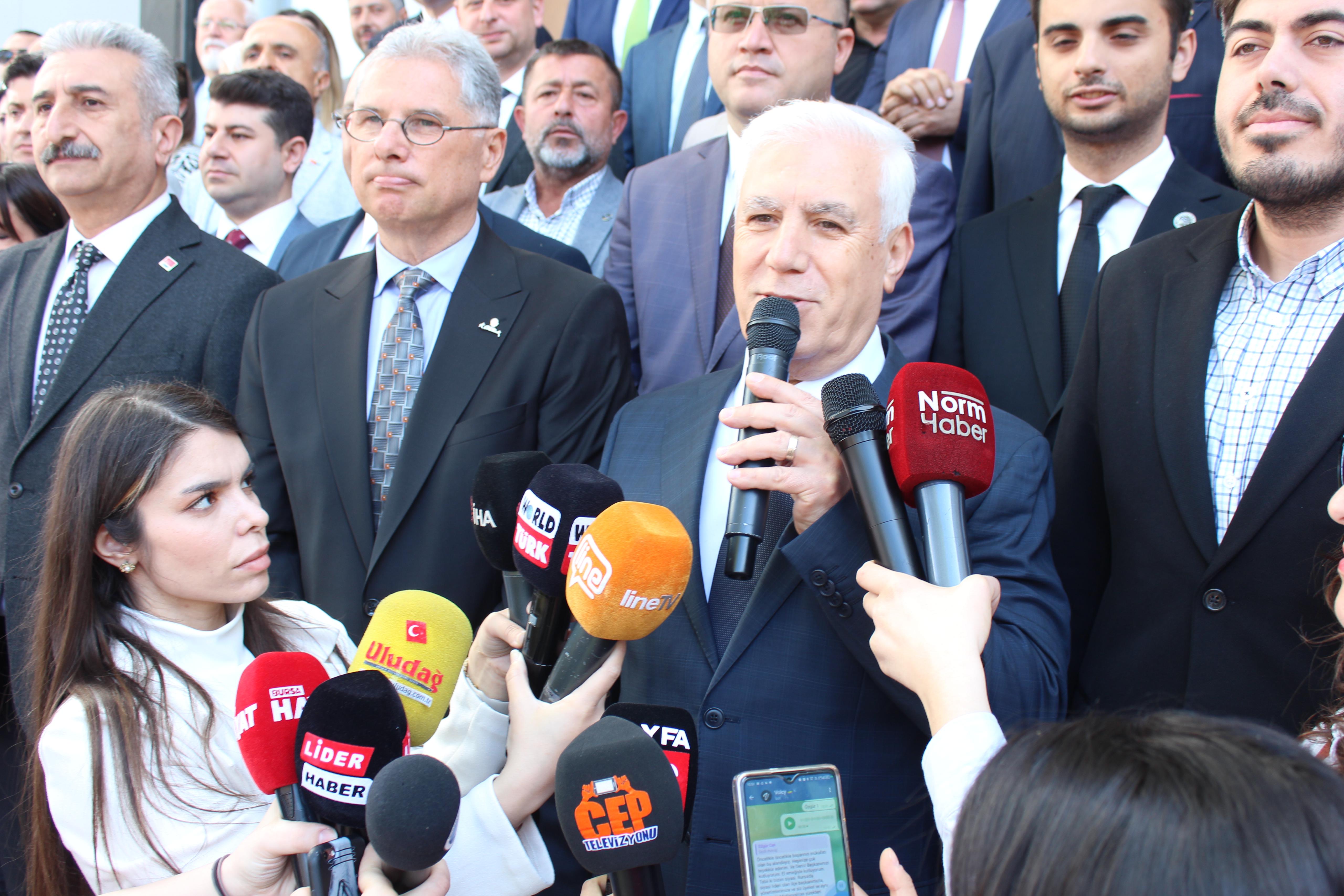 "Öncelikle başarının mükafatı olan bu alandayız. Hepinize çok teşekkür ederim ve Deniz Başkanımızı kutluyorum. El emeğiyle kutluyorum. Bursa'nın siyasi lideri olan ilçe başkanımızla, yönetimlerimize ve siz üyeleri ve aynı zamanda Mudanyalıları yürekten kutluyoruz