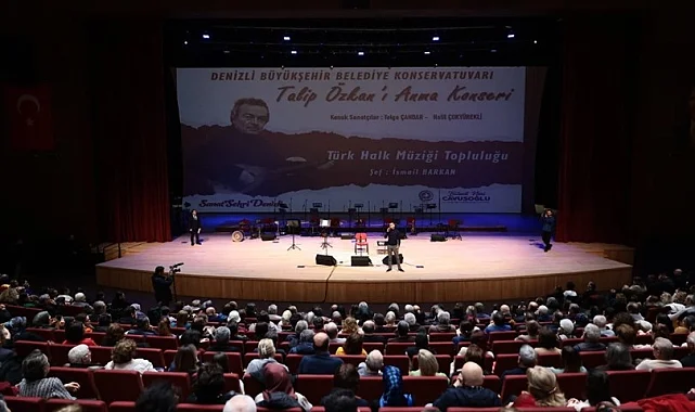 Denizli Büyükşehir Belediyesi, Türk halk müziğinin bilimsel ve sanatsal mirasına ömrünü adamış büyük usta Talip Özkan'ı anlamlı bir konserle andı. Sanatçı Tolga Çandar ile İzmirli nefesli sazlar ustası Halil Çokyürekli'nin Denizlililerle buluştuğu bu özel gecede, Talip Özkan'ın kızı Aybala Yentürk duygu dolu anlar yaşadı.DENİZLİ (İGFA) - Denizli Büyükşehir Belediyesi Konservatuvarı Türk Halk Müziği Topluluğu, Şef İsmail Barkan yönetiminde "Talip Özkan'ı Anma Konseri" düzenledi. Denizli Büyükşehir Belediyesi Kongre ve Kültür Merkezi Özay Gönlüm Salonu'nda gerçekleşen bu özel geceye, Denizli Büyükşehir Belediye Başkanı Bülent Nuri Çavuşoğlu, eşi Nilgün Çavuşoğlu, Büyükşehir Belediyesi Başkan Vekili Ali Marım, Acıpayam Belediye Başkanı Levent Yıldırım, DBB Kültür, Sanat ve Sosyal İşler Dairesi Başkanı Mehmet Selçuk, Talip Özkan'ın kızı Aybala Yentürk, oğlu Tarkan Özkan ile çok sayıda davetli ve vatandaşlar katıldı.