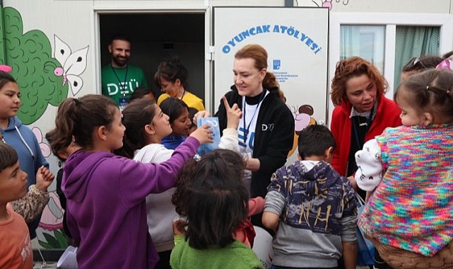 Afet sonrası travma yaşayan çocukların duygularını daha iyi ifade edebilmeleri için sanatın iyileştirici özelliğini temel alan DEÜ'lü uzmanlar tarafından çeşitli atölyeler de kuruldu. Uzmanlarca hazırlanan ve uygulanan resim, müzik, dans, şiir, drama, masal, seramik ve kil atölyeleri ile çocukların ihtiyaçlarına yönelik tasarlanan oyun atölyeleri, miniklerden yoğun ilgi gördü.