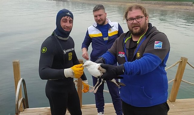 Balıkesir Büyükşehir Belediyesi Gömeç Dalış Köyü açıklarında balıkçıların kullandığı kancalı sahte maket yeme takılarak boğulmak üzere olan bir martı, Dalış Köyü görevlisi Burak Gürcan sayesinde kurtarılarak yeniden doğal ortamına salındı.BALIKESİR (İGFA) - Balıkesir Büyükşehir Belediyesi Gömeç Dalış Köyü açıklarında uçamayan ve boğulmak üzere olan bir martı, Dalış Köyü'nde görevli Burak Gürcan'ın dikkati sayesinde kurtarılarak yeniden hayata döndü. Martının suyun içerisinde çırpınışlarını gören Gürcan, suya hemen atlayarak martıyı kıyıya çıkardı. Gürcan, martının misina ipine dolandığını ve at-çek (spin) balık avcılarının kullandığı kancalı sahte maket yeme yakalandığını fark etti. Martıya zarar vermeden misinayı ve sahte maketi martının gagasından çıkartan Gürcan, daha sonra martıyı yeniden doğaya saldı. MİSİNA VE MAKET YEMLER ÖLÜMCÜL BİR TUZAK Gömeç'in su altı güzelliklerini dünyaya tanıtmak ve dalış eğitimi vermek için görev yapan Gürcan, balık tutkunlarına seslenerek, "Lütfen, kopan misinalarınızı, sahte maketlerinizi denizde ve deniz kıyısında bırakmayın! Martı ve kediler için ölümcül bir tuzak olabiliyor. Son anda fark etmemiz sayesinde martı kurtuldu ve yeniden doğal ortamına kavuştu" dedi.