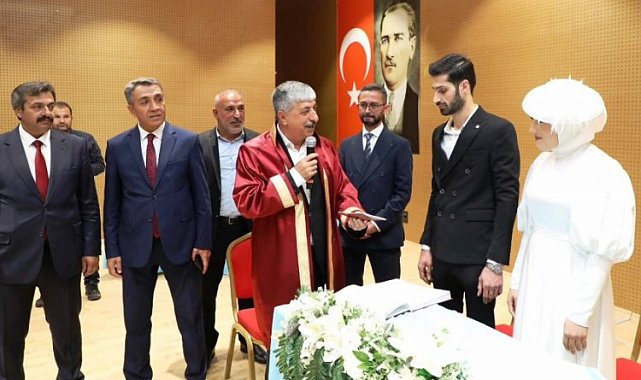 31 Mart yerel seçimlerinin ardından geçtiğimiz haftalarda mazbatasını ve belediye mührünü alarak görevine başlayan Dilovası Belediye Başkanı Ramazan Ömeroğlu ilk nikahını önceki gün kıydı.KOCAELİ (İGFA) -31 Mart Yerel Seçimlerinde Dilovası Belediye Başkanlığı'na seçilen Ramazan Ömeroğlu, belediye başkanı olarak ilk resmi nikahını kıydı.Erol – Zenure Laç ve Mustafa - Özgül Özay ailelerinin evlatları Yunus ile Betül çiftinin nikah akdini gerçekleştiren Başkan Ömeroğlu, genç çiftin mutluluklarına ortak oldu.Başkan Ömeroğlu, gençleri tebrik ederek bir ömür boyu mutluluklar dilerken yaptığı konuşmasında "Genç çiftimizin nikâhları inşallah hayırlara vesile olur. Gençlerimize huzurlu mutlu ömür diliyorum. Evlilik müessesine attıkları ilk adım. Bundan sonra kendilerini uzun bir hayat bekliyor. Kendileri tebrik ediyorum. Hayırlara vesile olmasını diliyorum" dedi. Evlilik cüzdanını "Evi dişi kuş yapar" diyerek genç gelin Betül'e takdim etti.