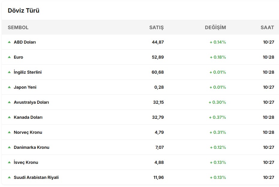 Yurt içi piyasalarda ise dolar/TL kuru yukarı yönlü seyrini sürdürdü. Dolar güne 44,8042 liradan başlarken, gün içinde 44,7977 ile 44,8615 lira aralığında dalgalandı. Kur, son işlemlerde 44,8520 lira seviyesinden alıcı buldu.