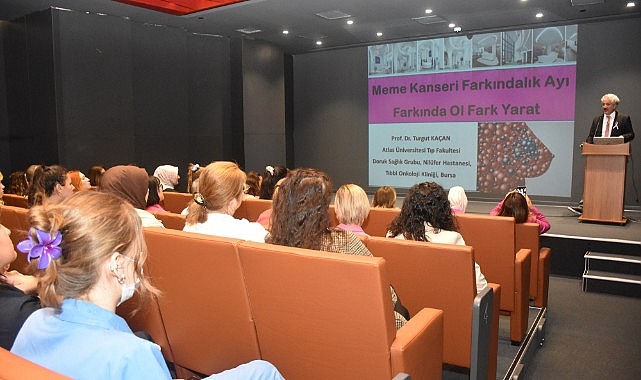 Organizasyonda Doruk Nilüfer Hastanesi Tıbbi Onkoloji Bölümü doktorlarından Prof.Dr. Turgut Kaçan, davetlilere yönelik yaptığı sunumda, meme kanserinin, ülkemizde ve dünyada en sık görülen kanser türleri arasında yer aldığını belirtti. Prof.Dr.Turgut Kaçan, “Ülkemizde erkeklerde akciğer kanseri, kadınlarda da meme kanseri en sık görülen kanser türleri arasında yer alıyor. Bu, tedavisi yüksek maliyetli bir hastalık. Hastanın sağlığı ve bu yüksek maliyetlerden kaçınabilmek için erken tanı çok önemli. Erken tanı ile hem hastanın hayatı kurtulabiliyor hem de kemoterapi gibi toksik tedavi yöntemlerine maruz kalmak zorunda kalınmıyor” dedi.“20 YAŞINDAN SONRA KENDİ KENDİNE TEDAVİ ÖNEMLİ”
