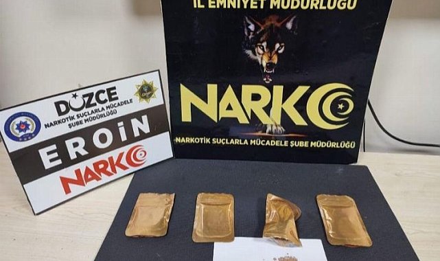 Düzce'de durdurulan araçta 4 parça halinde 105 gram eroin ele geçirilmesine ilişkin gözaltına alınan 3 şüpheli, tutuklandı.DÜZCE (İGFA) - Düzce İl Emniyet Müdürlüğü Narkotik Suçlarla Mücadele Müdürlüğü ekipleri, şüphe üzerine TEM Otoyolu'nda durdurdukları 34 plakalı araçta yaptıkları aramada, çeşitli suçlardan kayıtlı bulunan 3 şüpheli gözaltına alındı.Araçta 4 parça halinde daralı toplam ağırlığı 105 gram olan eroin ele geçirildi.Gözaltına alınan H.E.T. (31), B.A. (32) ve S.A. (28) işlemleri ardından adliyeye sevk edildi.Şüpheliler, 'uyuşturucu madde ticareti yapmak' suçundan tutuklandı.