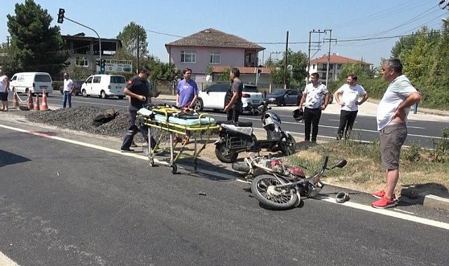 Kalıcı Konutlar Bağlantı yolunda yasal olmasına rağmen orta refüjden geçmeye çalışan motosiklet sürücüsüne otomobil çarptı. Kazada motosiklet sürücüsü ağır yaralandı.Sefer DEMİR / DÜZCE (İGFA) - Alınan bilgilere göre Kalıcı Konutlar Bağlantı Yolu'nda meydana gelen kazada Kalıcı Konutlar istikametine gitmekte olan 81 AN 071 plakalı otomobil, yol çalışması nedeniyle kapalı ve geçişin yasak olduğu orta refüjden yolun karşısına geçmeye çalışan Necmettin Başoğlu idaresindeki 81 BF 628 plakalı motosiklete çarptı.Çarpmanın etkisi ile motosiklet sürücü aracından fırlayarak asfalt zemine düştü.Ağır yaralanan motosiklet sürücüsü sağlık ekiplerinin müdahalesinin ardından Atatürk Devlet Hastanesi'ne kaldırılarak tedavi altına alındı.Kazayla ilgili olarak soruşturma başlatıldı.