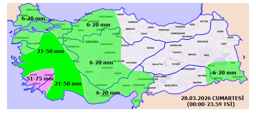 Meteoroloji Genel Müdürlüğü (MGM) verilerine göre, Ege Denizi üzerinden gelen yeni yağışlı hava dalgası bugün batı illerini etkisi altına alacak. Hafta sonu ise sistem neredeyse tüm yurtta etkili olacak.