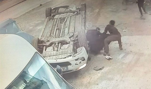 Kaza, dün saat 17.00 sıralarında Akhisar Mahallesi Karalar Yolu Caddesi’nde meydana geldi. Babasından habersiz aldığı 16 AOY 420 plakalı otomobille Hacı Sevim Yıldız Mesleki Eğitim Kampüsü’ne gelen 14 yaşındaki Ali B., derslerin ardından 7 arkadaşını gezdirmek için araca bindirdi. Bir süre sonra Ali B.’nin kontrolünü kaybettiği otomobil, park halindeki 16 AFH 829, 16 BTF 434 ve 34 SR 6914 plakalı araçlara çarparak takla attı. Kaza, bir iş yerinin güvenlik kamerasına yansıdı.