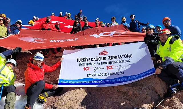 Türkiye Dağcılık Federasyonu tarafından Kayseri Erciyes (3917m) dağına tırmanış düzenlendi. Türkiye'nin çeşitli illerinden farklı kulüplerden 100'den fazla sporcunun katıldığı 29 Ekim Cumhuriyet Tırmanışı başarı ile gerçekleştirildi.MANİSA (İGFA) - Türkiye Dağcılık Federasyonu tarafından Cumhuriyet'in 100'üncü yılında düzenlenen Kayseri Erciyes dağına tırmanış düzenlendi.Yüzden fazla sporcunun katıldığı faaliyete Manisa'yı temsilen Manisa Büyükşehir Belediyespor Dağcılık Spor Şubesi sporcuları katılarak Manisa Büyükşehir Belediyesi'nin ve Manisa'nın ismini gururla duyurdu. İki farklı rota ve yönden gerçekleştirilen tırmanış, Cumhuriyetimizin 100'üncü yılında daha bir coşkulu tamamlandı.28 Ekim tarihinde süt donduran ve çoban ini mevkilerine ayrı ayrı kamp kuran sporcular 29 Ekim sabahı saat 03.00'da yürüyüşe başladı. Saat 10.00 civarlarında Erciyes'in zirvesinde (3917m) sporcular buluştu. Sporcular hep birlikte Ulu Önder Mustafa Kemal Atatürk ve silah arkadaşları için saygı duruşunda bulundu, İstiklal Marşı'nı okudu. Kısa bir dinlenme sonrasında geldikleri rotadan dönüşe geçen sporcular 16.00 civarlarında kamp alanlarına ulaşarak şehir merkezine doğru yola çıktı. Manisa Büyükşehir Belediyespor Kulübü Dağcılık Şubesi sporcuları da flamayı Erciyes'in zirvesinde dalgalandırarak hem Manisa'nın adını duyurdu hem de Manisa'yı gururlandırdı.