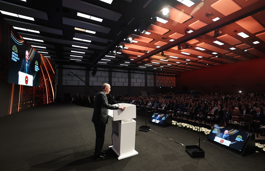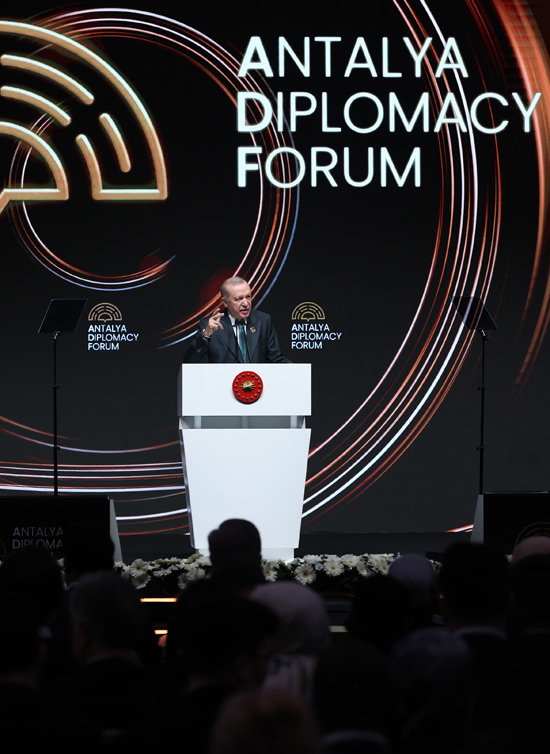 Erdoğan, Antalya Diplomasi Forumu’nun yıllar içinde önemli bir uluslararası marka haline geldiğini belirtti. Forumun yalnızca diplomatik temasların yürütüldüğü bir alan olmadığını söyleyen Cumhurbaşkanı, burayı “yeni etkileşim alanlarının tartışıldığı, derinlikli istişarelerin yapıldığı bir akıl platformu” olarak tanımladı.