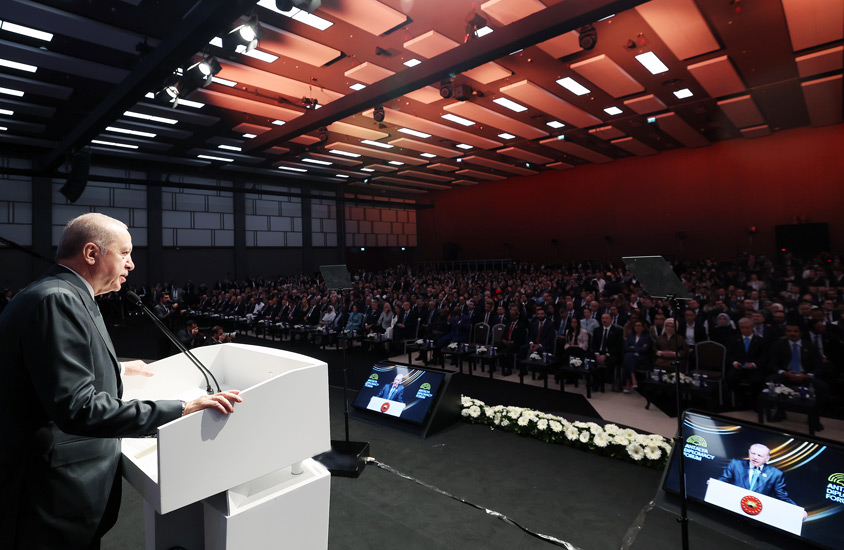 Küresel sistemde ciddi dönüşümler yaşandığını vurgulayan Erdoğan, güç dengelerinin değiştiğini, yeni aktörlerin yükseldiğini ve uluslararası rekabetin daha da sertleştiğini söyledi.