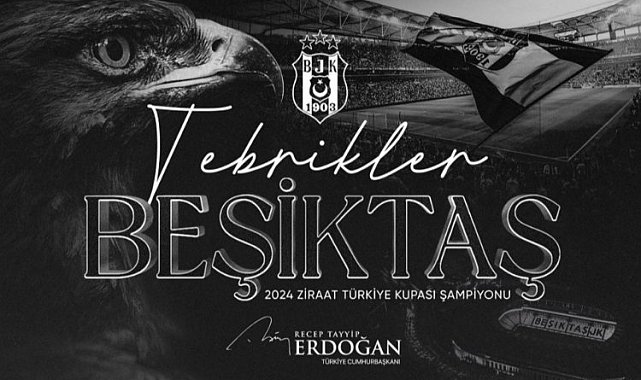Cumhurbaşkanı Erdoğan Ziraat Türkiye Kupası Şampiyonu Beşiktaş'ı kutladıANKARA (İGFA) - Cumhurbaşkanı Recep Tayyip Erdoğan, sosyal medya hesabından yaptığı paylaşımla, Ziraat Türkiye Kupası'nı kazanan Beşiktaş'ı tebrik etti.Cumhurbaşkanı Erdoğan, paylaşımda, "2024 Ziraat Türkiye Kupası Şampiyonu Beşiktaş'ı, tüm Beşiktaş camiasını ve taraftarını canıgönülden tebrik ediyorum." ifadesini kullandı.