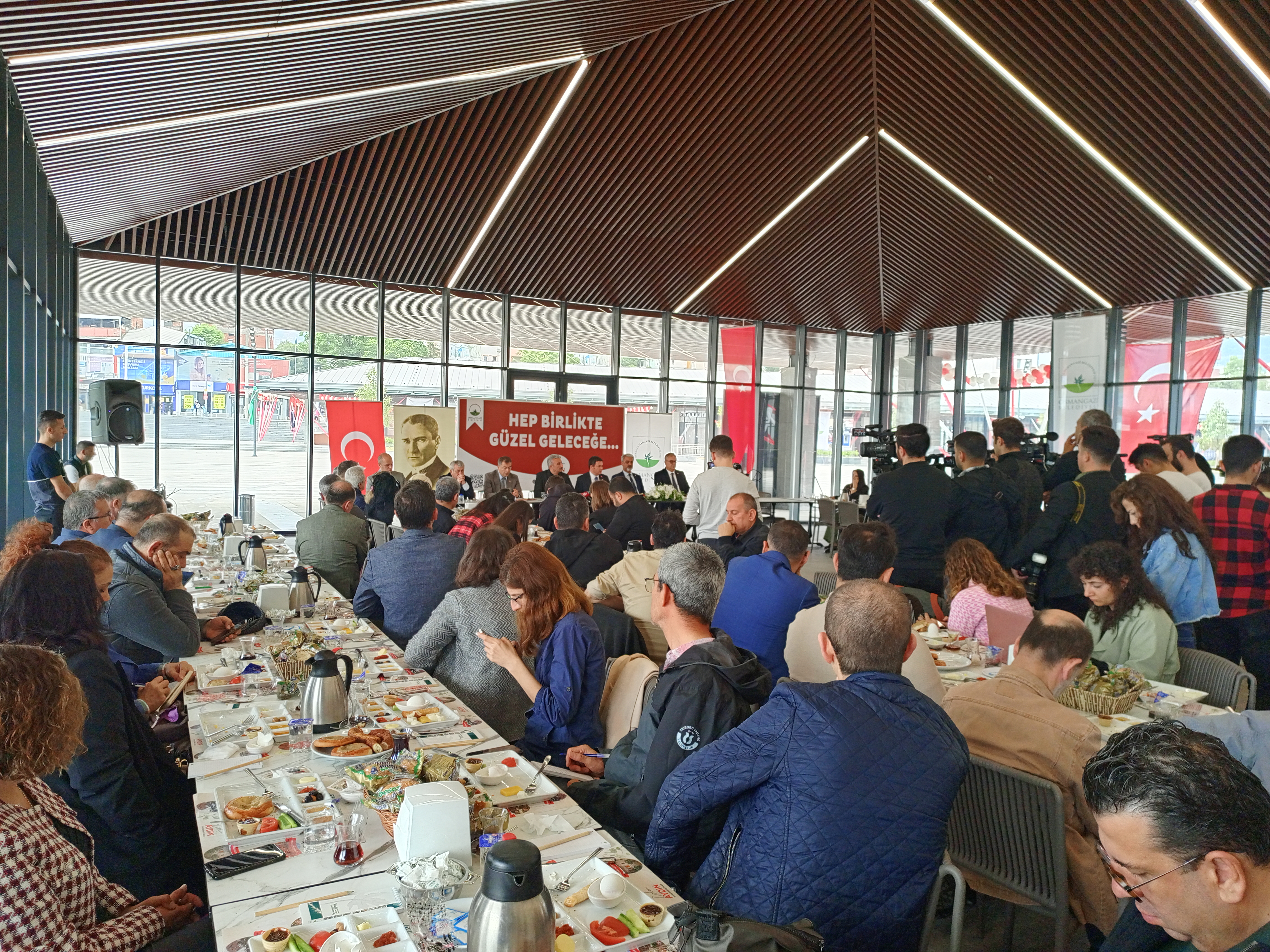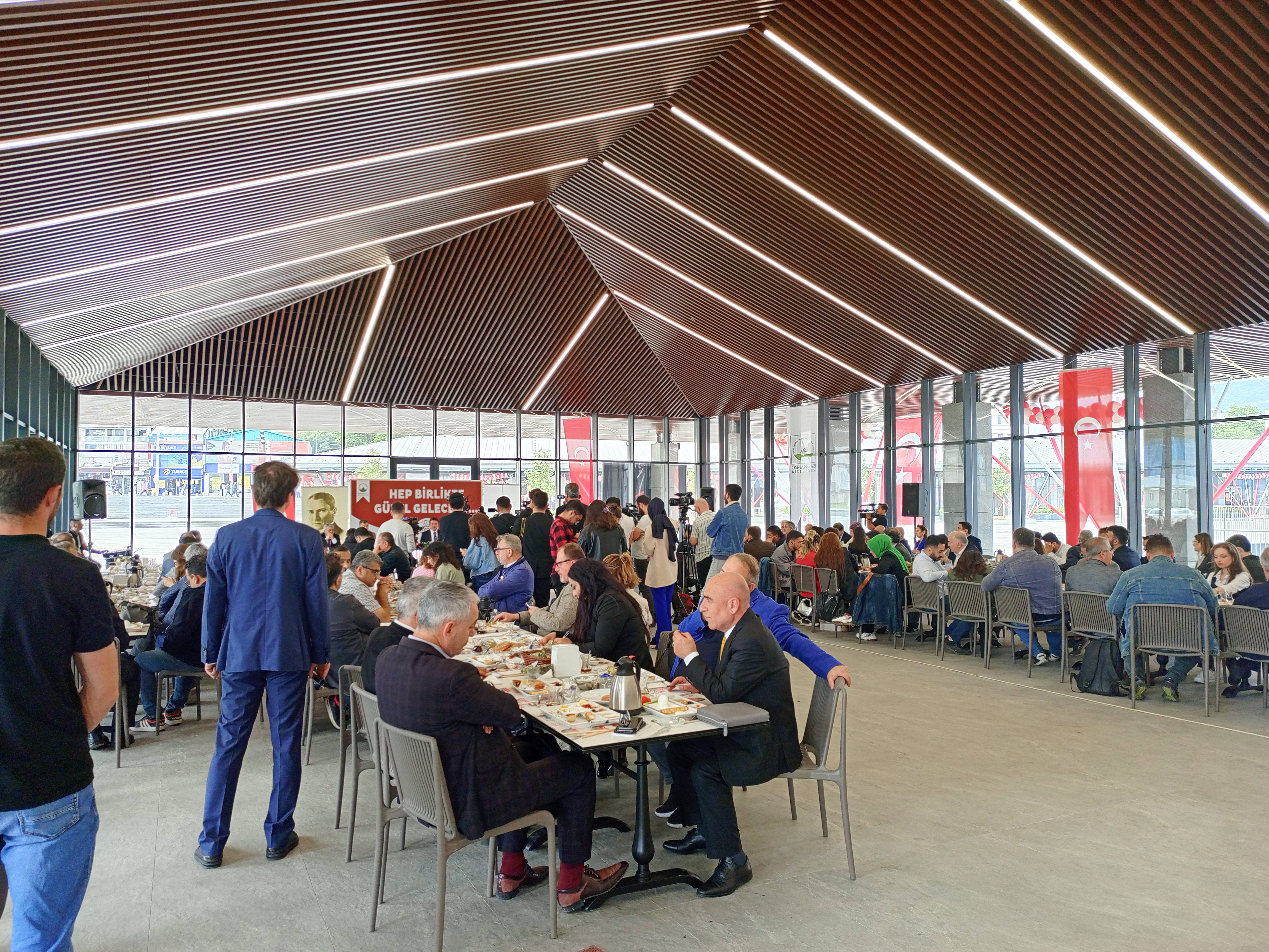 "Şu anda içinde bulunduğumuz mekan Halk Lokantası olarak hizmet vereceğimiz mekanımız. Haziranın ilk haftası gibi açılışını yapmayı planlıyoruz. 3 - 4 çeşit yemeği, 80 TL'den vatandaşlarımıza sunacağız. Ekonomik sıkıntı içerisinde günübirlik uçuşturma içerisinde ucuz yemeğe ulaşamayan vatandaşlarımıza hizmet edecek olan mekandayız. Tabii ki burayı biz hazır bir şekilde kurduk. O yüzden emeği geçenlere bu şekilde hazırlayanlara da teşekkür ediyoruz. Halk lokantamız vatandaşlarımıza 11 ile 3 arasında burada çıkacak olan yemeklerimiz aynı anda 350 kişiye hizmet edebilecek bir kapasitesi var. Self servis sistemi ile bin civarında yurttaşımıza burada ucuz yemek imkanı sunacağız.