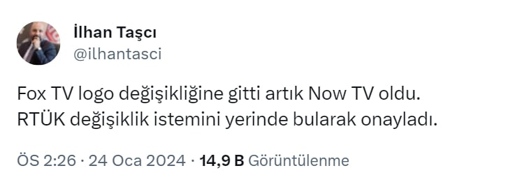 Disney grubu, FOX'u satın alırken isim hakkını belli bir süreliğine almıştı. Bu süre dolduğu için kanalın adı değişti.Değişikliği, Radyo ve Televizyon Üst Kurulu (RTÜK) üyesi İlhan Taşcı X hesabından duyurdu.Taşçı "FOX TV logo değişikliğine gitti artık Now TV oldu. RTÜK değişiklik istemini yerinde bularak onayladı" ifadelerini kullandı