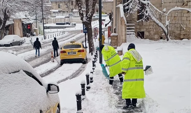 Gaziantep Büyükşehir Belediyesi, kent genelinde etkili olan kar yağışı nedeniyle kaldırım ve yaya yollarında karla mücadele çalışmalarını aralıksız sürdürüyor.GAZİANTEP (İGFA) - Gaziantep Büyükşehir ekipleri, ana arterlerde trafik güvenliğinin sağlanmasına yönelik yol temizleme çalışmalarını yürütürken; çarşı merkezleri, hastaneler, toplu kullanım alanları ve yaya yoğunluğunun yüksek olduğu bölgelerde kaldırımlarda biriken karları temizliyor. Yapılan çalışmalarla yaya ulaşımının güvenli şekilde devam etmesi hedefleniyor.Özellikle yaşlılar, çocuklar ve engelli bireylerin kullandığı güzergâhlarda kar küreme ve tuzlama faaliyetleri öncelikli olarak gerçekleştiriliyor. Buzlanma riskine karşı gerekli önlemler alınarak olası kazaların önüne geçilmesi amaçlanıyor.Gaziantep Büyükşehir Belediyesi, hava şartlarını dikkate alarak kent genelindeki karla mücadele çalışmalarını 7 gün 24 saat esasına göre sürdürüyor.