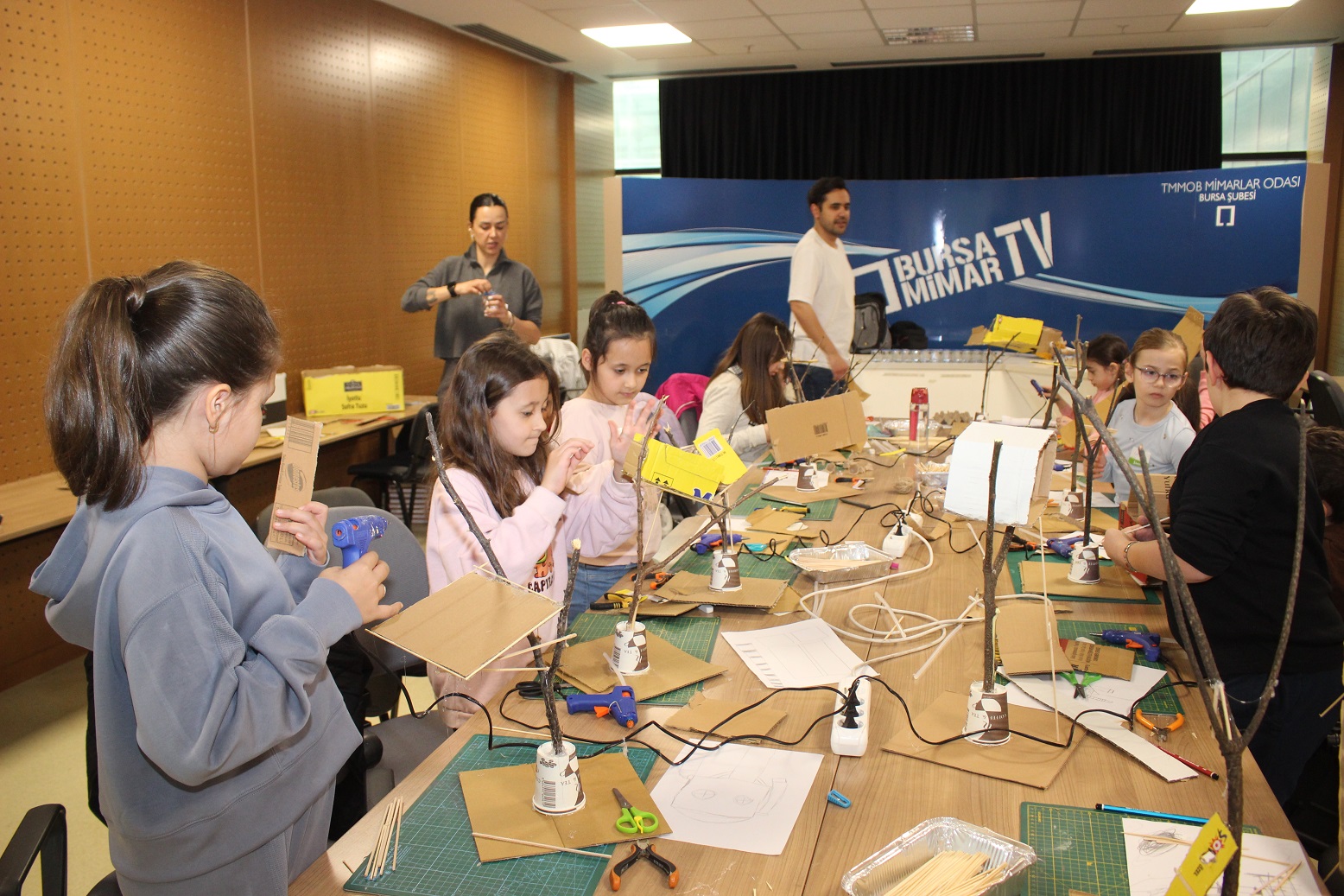 Mimarlar Odası Bursa Şubesi, 23 Nisan Ulusal Egemenlik ve Çocuk Bayramı kapsamında düzenlediği “Çocuk Atölyesi” etkinliğiyle 7-12 yaş aralığındaki çocukları bir araya getirdi. Etkinlikte minik katılımcılar, hayal güçlerini kullanarak ağaç ev tasarımları gerçekleştirdi.