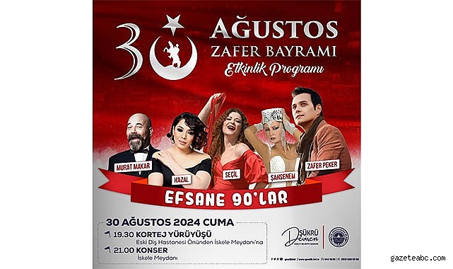 Kutlama programı, 30 Ağustos akşamı saat 19.30’da eski diş hastanesi önünden başlayacak olan kortej yürüyüşü ile start alacak. Yürüyüşün ardından etkinlikler, İskele Meydanı’nda düzenlenecek olan Efsane 90’lar konseri ile devam edecek.