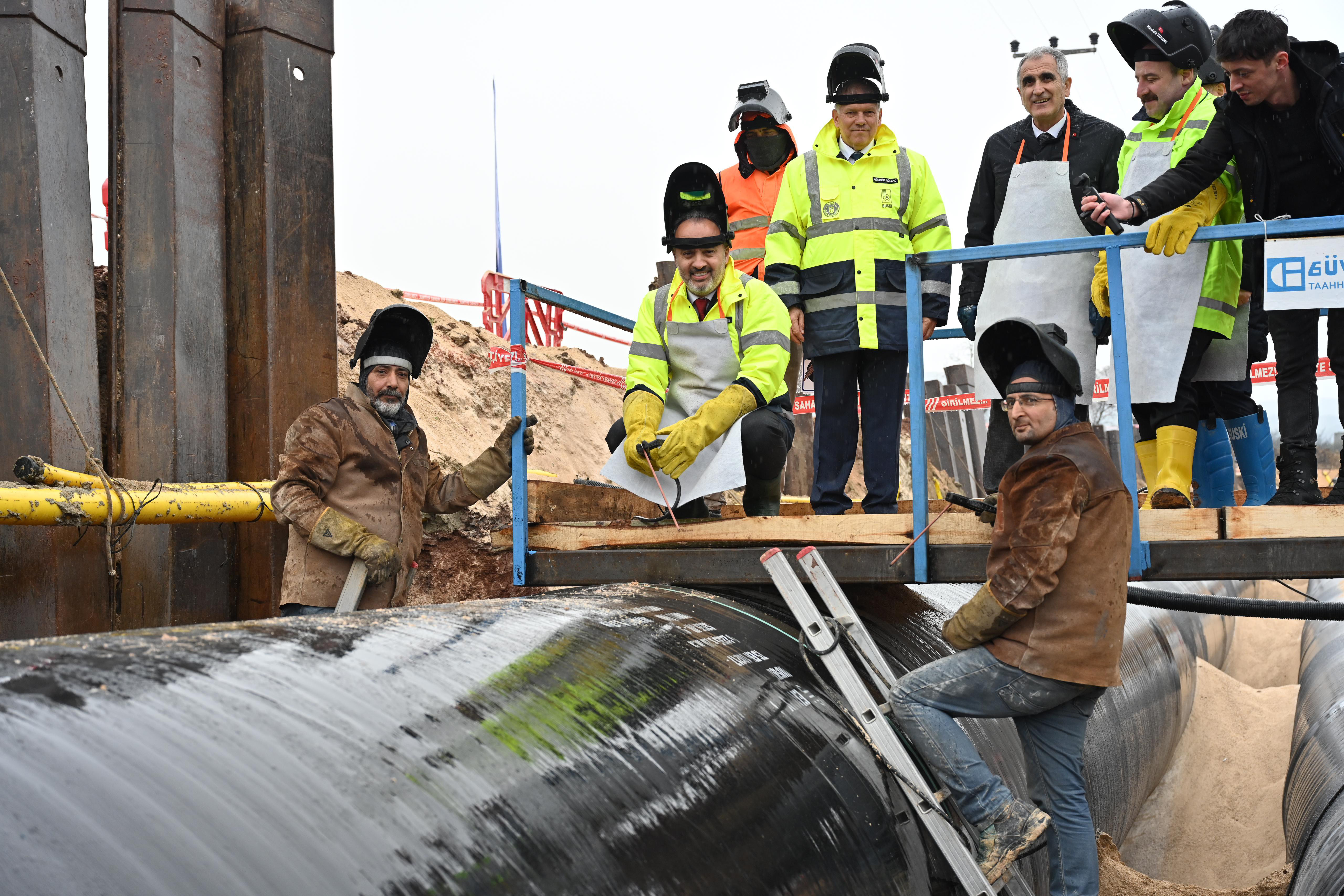 Kesintisiz içme suyu temininde çok önemli bir yeri olan Çınarcık Barajı’nın suyunu Bursa ile buluşturan tarihi çalışmayı başlattıklarını anlatan Başkan Aktaş, “Çınarcık içme suyu projesi, şehrin su ihtiyacını karşılama noktasında ‘can suyu’ olacak. Proje tamamlandığında Bursa’nın 2060 yılına kadar su sıkıntısı olmayacak. İhale ederek imalat çalışmalarına başladık. 300 bin metreküp günlük arıtma kapasitesine sahip 1 arıtma tesisini, 68 kilometre isale hattını, 3 adet içme suyu deposunu yaklaşık 130 milyon euro yatırımla Bursa tarihinin en büyük altyapı yatırım olarak gerçekleştiriyoruz” diye konuştu.