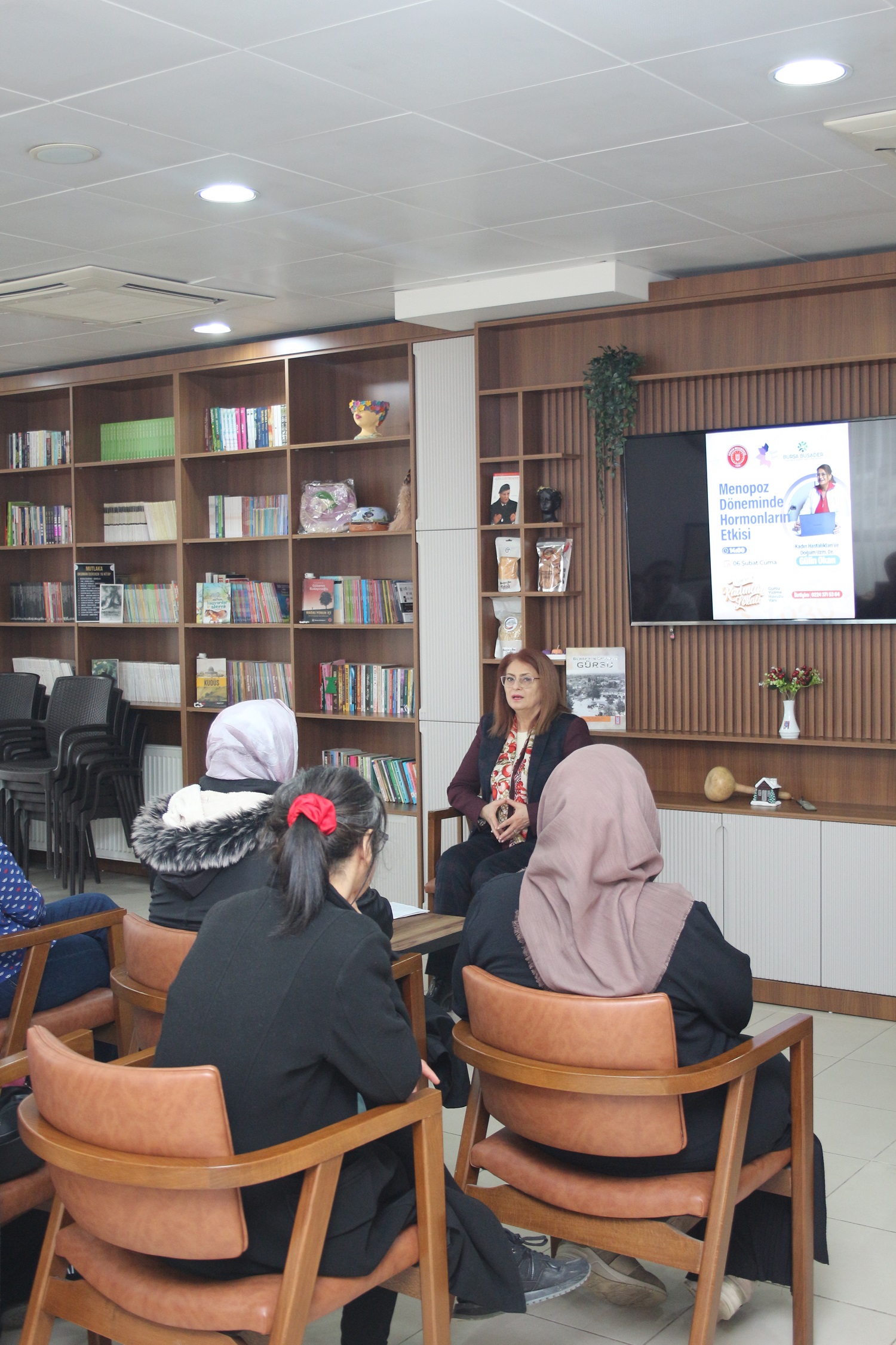 Gürsu Belediyesi ve Bursa Sağlık ve Eğitim Gönüllüleri Derneği (BUSADER) iş birliğiyle “Menopoz Döneminde Hormonların Etkisi” konulu bir seminer düzenlendi. Gürsu Kadınlar Lokali’nde gerçekleştirilen etkinlik, kadınların menopoz sürecini bilinçli ve sağlıklı şekilde geçirmelerine rehberlik edecek bilgiler sundu.