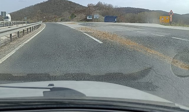 Bilecik Bozüyük'e seyir halindeki kasası açık unutulan hafriyat yükü kamyondaki kumlar yola saçılırken görüntülendi.Pazaryeri Gündem / BİLECİK (İGFA) - İstanbul, Antalya D650 Karayolunda bir kamyonun kasasından dökülen hafriyat ve kumlar aynı istikamette seyir halindeki sürücülere zor anlar yaşattı.D650 Karayolunda Bilecik'ten Bozüyük ilçesine seyir halindeki 34 JD 3983 plakalı hafriyat taşıyan kamyon, kasa kapağı açık kalması nedeniyle araçta yüklü olan kumlar yola döküldü.Bilecik - Bozüyük karayoluna dökülen kumlar, trafikte tehlikeye sebep oldu.