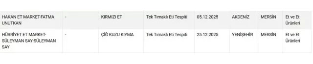 Olayın yankıları sürerken Mersin’de faaliyet gösteren iki firmanın daha at ve eşek eti sattığı ortaya çıktı. Hakan Et Market ve Hürriyet Et Market’in kıyma ve et ürünlerinde tek tırnaklı hayvan eti kullanıldığı tespit edilerek Bakanlık listesinde ifşa edildi.