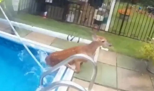 Amerika Birleşik Devletleri'nin Massachusetts eyaletinde, havuza giren geyik polis ekiplerince kurtarıldı. Yavru olduğu belirlenen geyik doğaya bırakıldı.abdpost.com / ABD (İGFA) - Massachusetts eyaletinin Ware kentinde ilginç bir kurtarma olayı yaşandı. Bölgede bulunan bir evin arka bahçesindeki havuzda genç bir geyik görülmesi üzerine polise haber verildi.Kısa sürede olay yerine gelen polis ekipleri, geyiği kolayca kurtarmak için havuzun etrafında dolaşmaya başladı. Ekipelr, uygun bir noktada hayvanı çekmeye çalışırken geyik havuzun kaplamasına takılmaya devam etti.YAVRU GEYİK KURTARILDIZamana karşı yarışan görevliler, geyik kendini yukarı çekmeye çalışırken bir havuz kepçesiyle geyiği havuzdan çıkarmayı başardı. Kurtarılan yavru geyik tekrar doğaya bırakıldı.Polisin paylaştığı kurtarma anının vücut kamerası görüntülerinde, polis memurlarının geyiği havuzda buldukları ve çıkmak için çabaladıkları görülüyor.