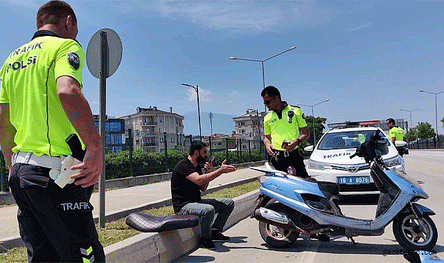 İnegöl İlçe Emniyet Müdürlüğü'ne bağlı trafik ekipleri, ilçe girişinde gerçekleştirdikleri uygulamada şüpheli davranışlar sergileyen bir motosiklet sürücüsünü durdurdu. Yapılan kontrollerde sürücünün ehliyetsiz olduğu ve kullandığı motosikletin çalıntı olduğu belirlendi. Alkolmetreye üfleyen sürücünün alkollü olduğu tespit edildi ve 1.70 promil alkollü çıktı. Bu durumda sürücüye toplamda 19 bin 407 lira idari para cezası kesildi. Ayrıca, başka bir araca ait plakayı kullanmaktan dolayı da 32 bin 170 lira cezai işlem uygulandı. Sürücü, ifadesi alınmak üzere polis karakoluna götürülürken, motosiklet çekici yardımıyla otoparka taşındı.