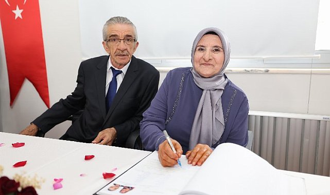 Gebze Huzurevi sakinlerinden Fatma Özer (70) ile Ekrem Şimşek (70) dünya evine girdi. İkinci baharlarını yaşamak üzere hayatlarını birleştirme karar alan çiftin nikah kıyma talebini geri çevirmeyen Gebze Belediye Başkanı Zinnur Büyükgöz, çiftin nikah akitlerini huzurevinde düzenlenen törenle gerçekleştirdi.KOCAELİ (İGFA) - Gebze Belediye Başkanı Zinnur Büyükgöz, Gebze Huzurevi'nde nikah kıydı. Gebze Huzurevi sakinlerinden Fatma Özer (70) ile Ekrem Şimşek (70) dünya evine girdi. İkinci baharlarını yaşamak üzere hayatlarını birleştirme karar alan çiftin nikah kıyma talebini geri çevirmeyen Gebze Belediye Başkanı Zinnur Büyükgöz, Özer ve Şimşek çiftinin nikah akitlerini huzurevinde düzenlenen törenle gerçekleştirdi.Fatma Özer ve Ekrem Şimşek'i bu mutlu günlerinde yalnız bırakmayan huzurevi sakinlerinin de katıldığı sade nikah töreninde mutluluğa 'evet' diyen çifte Başkan Büyükgöz, iki cihan saadeti ve mutluluklar temennisinde bulundu. Çiftin nikahını kıyan Gebze Belediye Başkanı Zinnur Büyükgöz aile cüzdanını gelin hanım takdim etti.