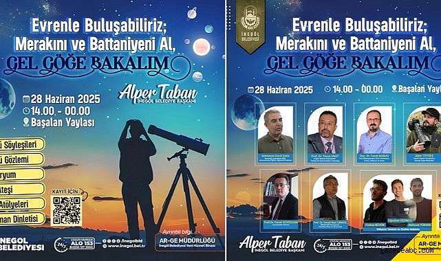 İnegöl Belediye Başkanı Alper Taban düzenlenecek gökyüzü etkinliğine tüm vatandaşları davet ederek, bilimi ve doğayı bir araya getiren bu özel organizasyonun önemine dikkat çekti. Başkan Alper Taban, hem çocuklar hem de yetişkinler için dopdolu bir program hazırlandığını belirterek etkinliğin sadece bir gözlem kampı olmadığını, aynı zamanda farkındalık ve öğrenme fırsatı sunduğunu vurguladı. Açıklamasında, “İnegöl’ümüzün doğal zenginliklerini bilimle buluşturmak istiyoruz” diyen Başkan Alper Taban, “Bu etkinlikle özellikle çocuklarımızın gökyüzüne ve bilime olan ilgilerini artırmayı amaçlıyoruz. Aynı zamanda vatandaşlarımızın doğayla iç içe zaman geçirmesini de istiyoruz. Gökbilimi, sanatla ve oyunla birleştirerek çocuklarımız için unutulmaz bir deneyim hazırladık. Her yaştan vatandaşımızı aileleriyle birlikte bu anlamlı etkinliğe bekliyoruz. Gökyüzüne bakmak, evreni keşfetmeye atılan ilk adımdır. Bu adımı hep birlikte İnegöl’den atalım.” dedi.