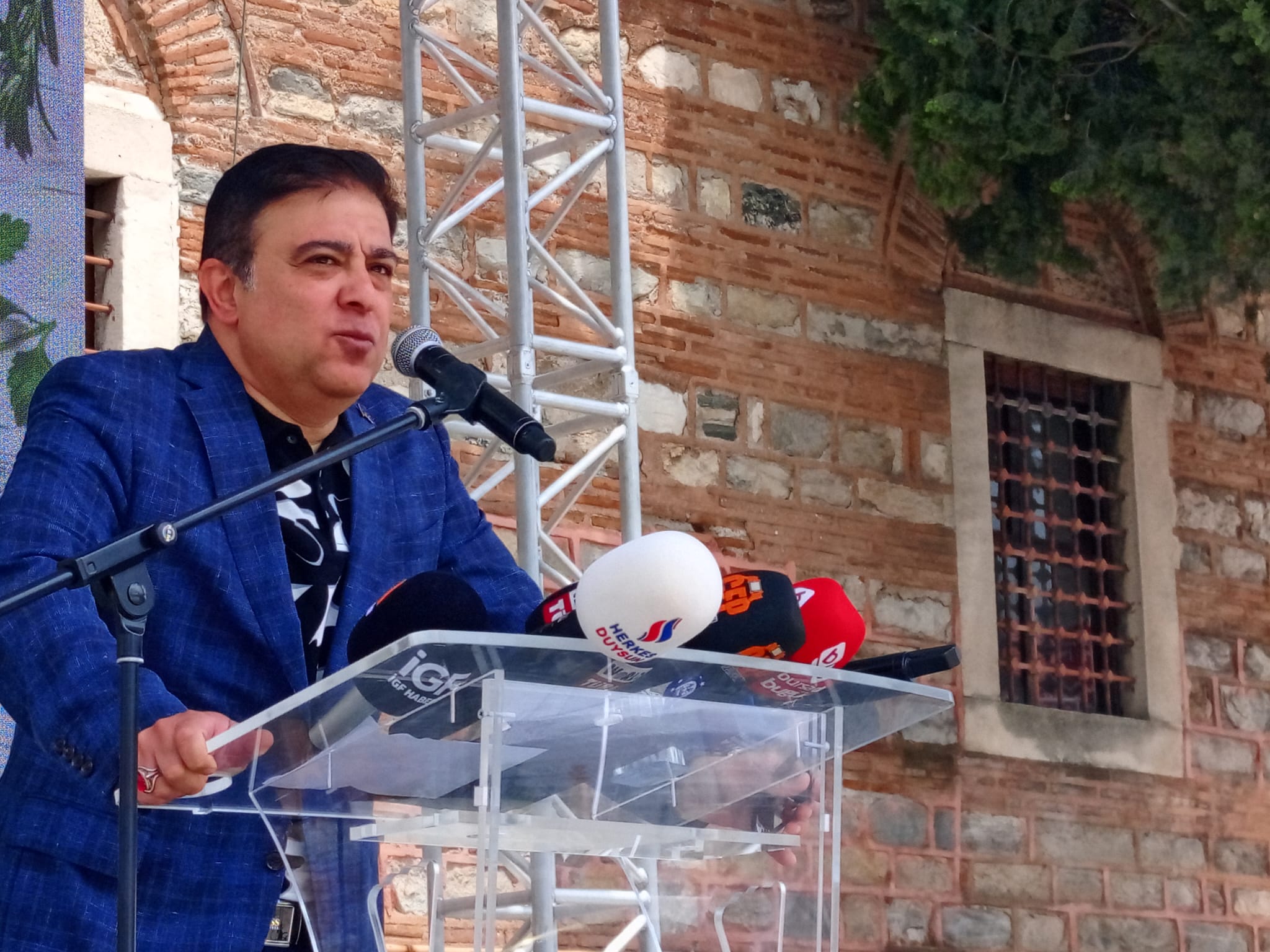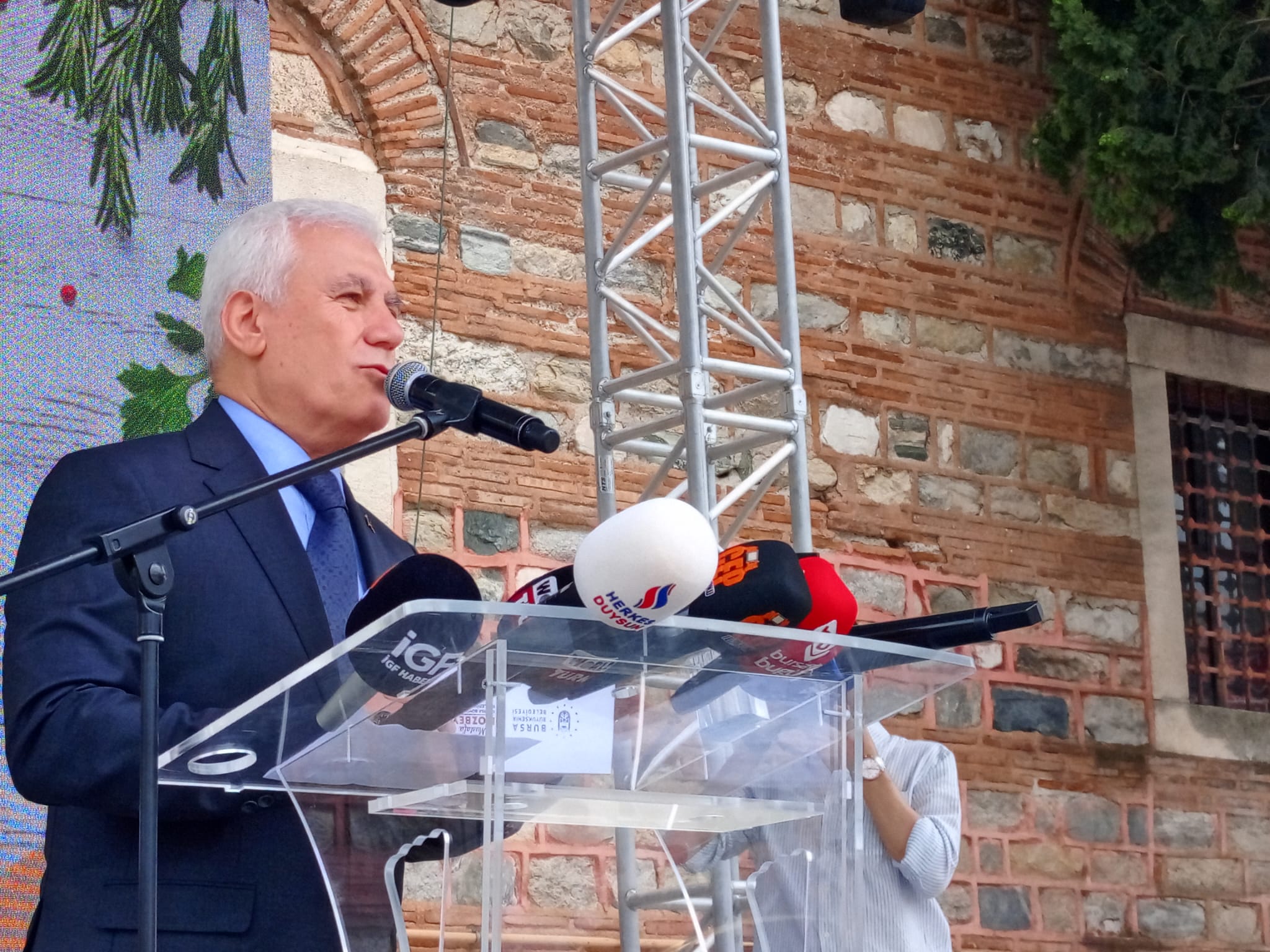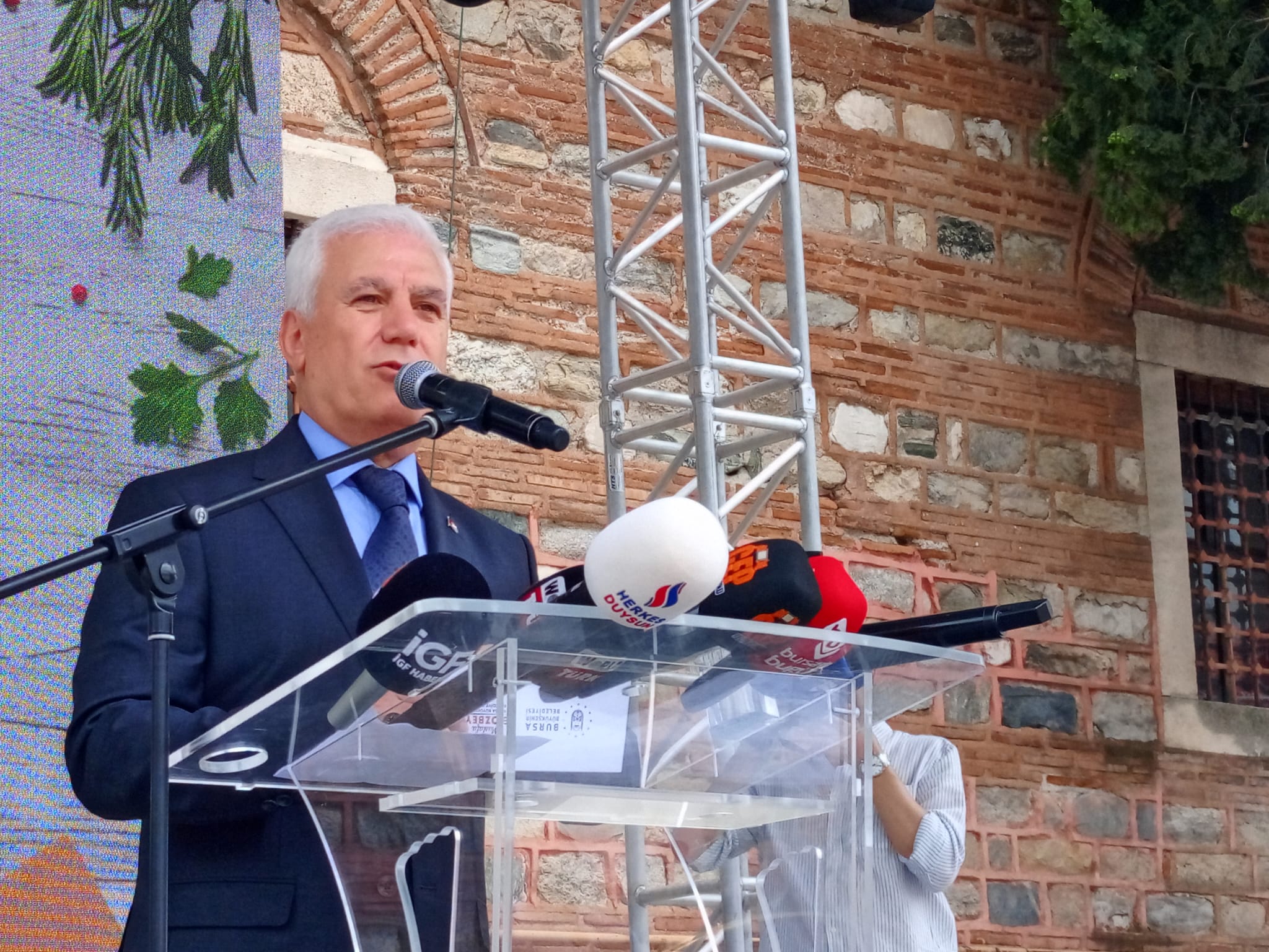 Asırlık tariflerle Türk mutfağı haftası etkinliği için burada bulunuyoruz. Cumhurbaşkanlığımızın himayelerinde 2022 yılından itibaren gerçekleştirilen Türkiye'deki gerçekten artık turizmin de çok önemli bir unsuru haline geldi. Mutfak ve gastronominin ne kadar önemli olduğu ama aynı zamanda da sürdürülebilirliğinin sağlanması atıksız, sağlıklı ve israfsız bir şekilde de bu mutfağın gelecek nesillere aktarılması bakımından çok önemli olduğundan dolayı 3 yıldır artık bu bir devlet programı olarak kutlanır hale geldi. Coğrafi işaretli ürünler bildiğiniz gibi o bölgenin geçmişten geleceğe kadar devam edecek süreç içerisindeki ürünleri kastediyoruz. Dünya üzerinde binlerce coğrafi ürün var. Avrupa Birliği tescili 17 tane ürün var. Bu ürünlerden bir tanesi Gemlik zeytini. Ama bizim ayrıca 30'un üzerinde Türkiye'de tescillenmiş coğrafi işaretli ürünümüz var. Bu ürünlerin hepsini hemen hemen bu hafta boyunca bütün ilçelerimizde. şeflerimizle, belediyelerimizle, kaymakamlıklarımızla gerçekten çok coşkulu, özveriyle harika bir şekilde kutluyoruz. Bugün de asırlık tariflerle Türk mutfağı dediğimiz şu asırlık tarihin bu meydanda Bursa'da biz bütün Türkiye'ye ve dünyaya kültür tarihte olduğu gibi aslında yemekte ve mutfakta da Bursa'nın ne kadar kadim bir kültürü taşıdığını bir kez daha anlatmaya çalışıyoruz. Bu vesileyle biz bugün burada bütün şeflerimizle, aslında mutfağın ve kültürün bütün paydaşlarıyla birlikte, kadın kooperatiflerimizde basınımızla, siyasi partilerimizle hep birlikte burada birliktelik olduğunda ne kadar güzel eserlerin ürünlerin ortaya çıkabileceğini de bir kez daha göstermiş oluyoruz. Ben bu vesileyle bu programımıza katkıda bulunan ve bizi hiçbir zaman yalnız bırakmayan Büyükşehir Belediye Başkanımıza ve diğer ilçelerdeki belediye başkanlarımıza, Kaymakamlıklarımıza, şeflerimize, kadın kooperatiflerimize, basınımıza ve diğer bütün paydaşlarımıza, hepinize ayrı ayrı teşekkür ediyorum. Bu programın önümüzdeki yıllarda ve gelecek dönemlerde de hayırlı olmasını ve Bursa'ya önemli katkılar getirmesini diliyorum.
