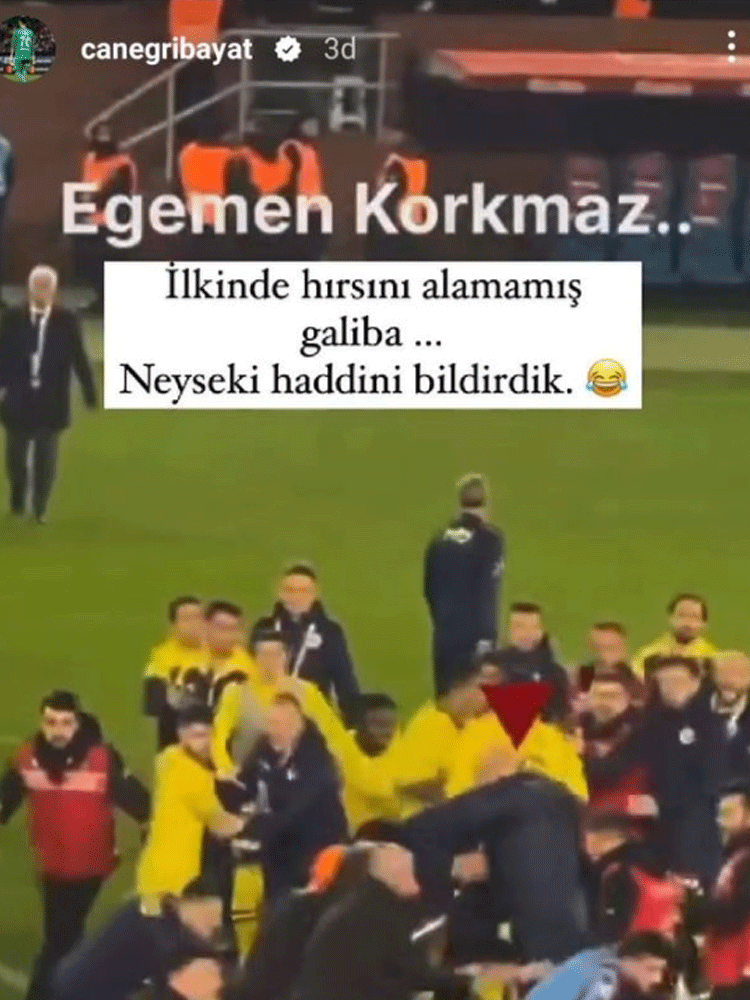 Trabzonspor - Fenerbahçe maçındaki arbedeye, iki takımın oyuncuları ve teknik ekibi de dahil oldu. Güvenlik güçlerinin yetersiz kaldığı olaylarda sahaya girenler arasında Abdullah Avcı'nın yardımcısı Egemen Korkmaz da vardı. Yaşanan kargaşada Fenerbahçe kalecisi İrfan Can Eğribayat'a yönelik fiziksel saldırısıyla sosyal medyada gündeme gelen Korkmaz'a büyük bir tepki geldi.