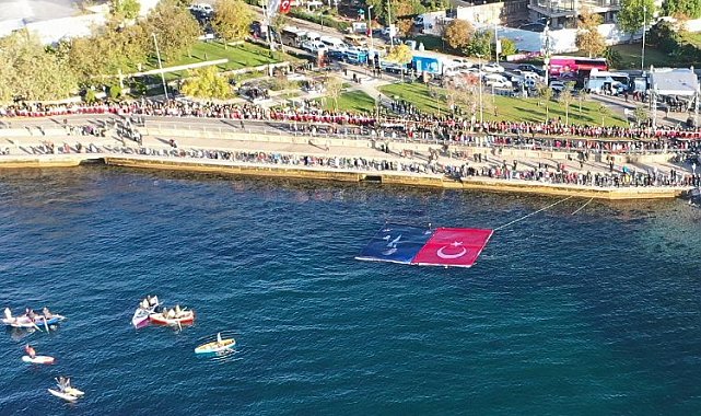 Türkiye Cumhuriyeti'nin kurucusu Gazi Mustafa Kemal Atatürk, aramızdan ayrılışının 85. yılında, Kadıköy'de binlerce kişinin el ele tutuşarak oluşturduğu "Ata'ya Saygı Zinciri" ile anıldı.İSTANBUL (İGFA) - İstanbul'un Kadıköy ilçesinde binlerce kişi Ata'ya saygı zinciri oluşturdu.Cumhuriyet'in kurucusu Ulu Önder Mustafa Kemal Atatürk'ü ebediyete intikalinin 85. yılında anmak için Kadıköy Belediyesi tarafından Fenerbahçe Orduevi ile Suadiye arasındaki sahil yolunda Ata'ya Saygı Zinciri oluşturuldu.Kadıköy Belediye Başkanı Şerdil Dara Odabaşı'nın da katıldığı programda, saat 9'u 5 geçe sirenlerin çalmasıyla birlikte saygı duruşuna geçildi.7'den 70'e herkesin yer aldığı anma törenine denizden de kanolar, sandallar ve tekneler, sirenlerini çalarak katıldı.Törene katılan dalgıçlar ise denizin altında dev Atatürk posteri ve Türk bayrağı açarak denizin yüzeyine çıkardı. Havadan ise paramotorlar Atatürk posteri ve Türk bayrağı açarak törene katıldı.Program, saygı duruşunun ardından İstiklal Marşı'nın söylenmesiyle sona erdi.