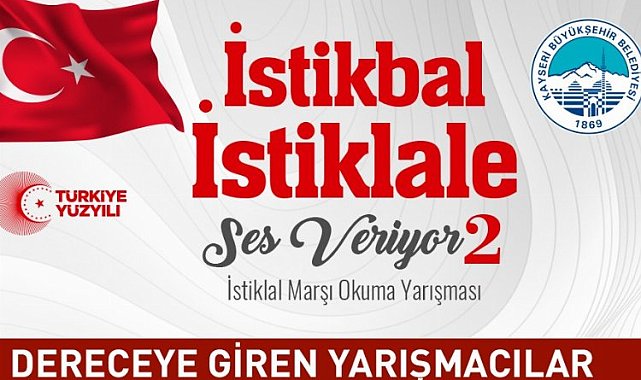 Kayseri Büyükşehir Belediyesi KAYMEK A.Ş. tarafından 12 Mart İstiklal Marşı'nın kabulü yıl dönümü kapsamında 'İstikbal İstiklale Ses Veriyor' sloganıyla düzenlenen ve toplam 837 gencin katıldığı 2'nci İstiklal Marşı Okuma Yarışması'nda kazananlar belli oldu.