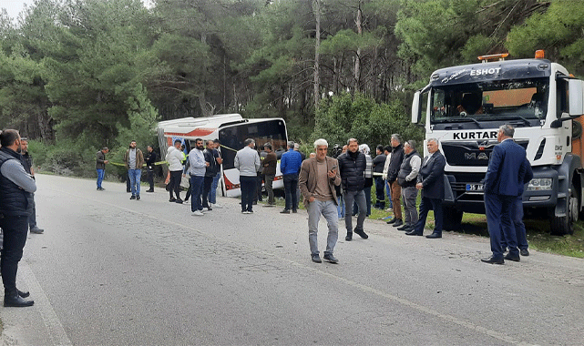 İzmir'in Sarnıç Mahallesi Çamlık Caddesi'nde bugün sabah saatlerinde korkunç bir kaza yaşandı. İddiaya göre, şerit ihlali yaptığı belirtilen Ergün Çelik'in kullandığı 34 GF 1118 plakalı TIR, üzerinde kadın pedi ve çocuk bezi yüklü olarak seyir halindeydi. Bu sırada, karşı yönden gelen Hakkı Diyar'ın idaresindeki 34 DA 5430 plakalı belediye otobüsüne çarptı. Çarpmanın etkisiyle otobüs körük kısmından devrildi. Kazada, otobüste bulunan yolculardan biri hayatını kaybetti, üç kişi ise yaralandı. Kazaya ilişkin soruşturma başlatıldı.