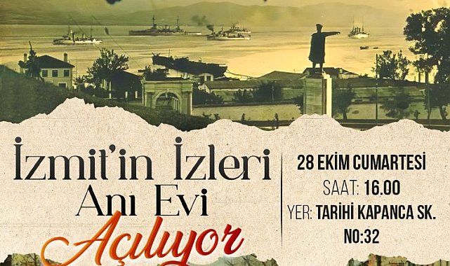 Cumhuriyetimizin ve İzmit Belediyesinin 100'üncü yılı etkinlikleri kapsamında kent kimliğini ve kent kültürünü hatıralarıyla beraber yaşatacak İzmit'in İzleri Anı Evi 28 Ekim Cumartesi günü açılıyorKOCAELİ (İGFA) - İzmit Belediyesi, Cumhuriyetimizin ve belediyenin 100'üncü yılında kentimizin tarihi kimliğini sergileyecek olan İzmit'in İzleri Anı Evi'ni açmaya hazırlanıyor. Osmanlı Tarihi ve Cumhuriyet Tarihinde çok önemli bir yere sahip olan İzmit'in kent kimliği ve kent kültürünü hatıralarıyla beraber yaşatacak olan İzmit'in İzleri Anı Evi Tarihi Kapanca Sokak'ta İzmitlilere kapılarını açacak.Kentin tarihi kimliği, unutulmuş meslekleri, nostalji alanları, geçmişten günümüze belediyecilik faaliyetleri gibi İzmit'e dair pek çok izi yerinde deneyimleme fırsatı sunacak olan İzmit'in İzleri Anı Evi, 28 Ekim Cumartesi günü saat 16.00'da açılacak. Kentin turizm cazibesini bir adım daha öne çıkaracak olan İzmit'in İzleri Anı Evi'nin açılışına tüm halkımız davetli.