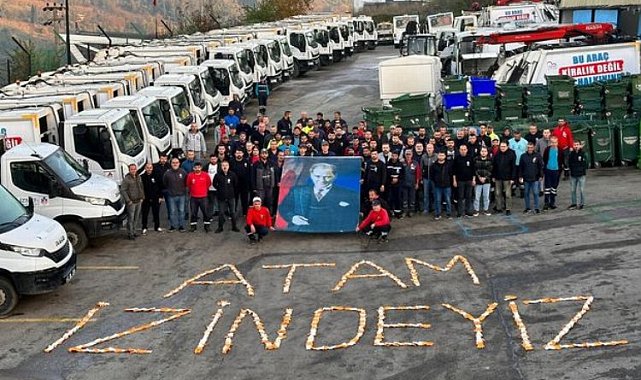 İzmit Belediyesi emekçileri iş eldivenleriyle 'Atam İzindeyiz' yazdılarKOCAELİ (İGFA) - Türkiye Cumhuriyeti'nin Kurucusu Gazi Mustafa Kemal Atatürk, ölüm yıl dönümünde ülke genelinde olduğu gibi İzmit'te de unutulmadı. İzmit Belediyesi Temizlik İşleri Müdürlüğü ekipleri, iş eldivenleriyle 'Atam İzindeyiz' yazan yazılı koreografi yaptılar.Atatürk'ün vefatının 85. yıl dönümünde mesai başlangıcında saygı duruşuna geçen emekçi personel, ardından İstiklal Marşını okudu.2 dakika boyunca tüm işini bırakarak Ata'ya saygı gösteren personeller, anma töreninin ardından görevlerine geri döndü.