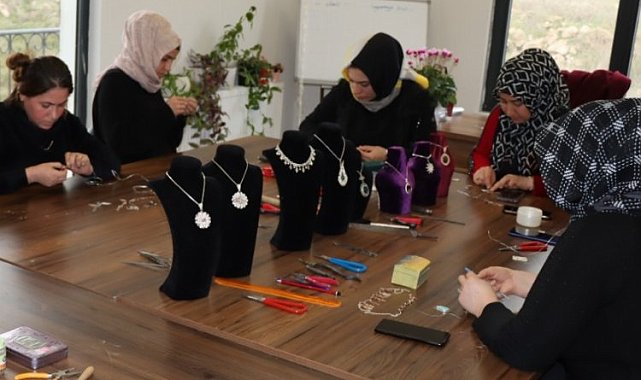 Şanlıurfa'nın Eyyübiye ilçesi Direkli Mahallesindeki kadınlar, Büyükşehir Belediyesi'nin hayata geçirdiği Üreten Kadınlar Merkezinde el emeği göz nuru ürünleri üreterek hem sosyalleşiyor hem de aile bütçesine destek oluyor.ŞANLIURFA (İGFA) - Şanlıurfa Büyükşehir Belediyesi tarafından yapılan ve kadınların hizmetine sunulan Üreten Kadınlar merkezi adeta bir okul gibi hizmet veriyor.Merkeze gelen kadınlar bir yandan meslek öğrenirken diğer yandan üreterek aile ekonomilerine katkıda bulunuyor.Şanlıurfa Büyükşehir Belediyesi bünyesindeki Direkli Mahallesi Üreten Kadınlar merkezinde atık kumaşlar, ipler ve çeşitli malzemeler değerlendirilerek ortaya bir obje çıkarılıyor. Usta öğreticiler tarafından gösterilen her bir detayı el emeği göz nuru ürünlere yansıtan Şanlıurfalı kadınlar, Üreten Kadınlar Merkezini evleri gibi benimsiyor.Merkezde kapı süsünden anahtarlığa, örme çantadan bebek patiğine kadar geniş yelpazede ürünler üreten kadınlar, evlerinde de bu işi devam ettirebiliyor. Sipariş alarak üretimini evde de sürdüren kadınlar ileride kendilerine ait işyeri açma hayali kuruyor.Şanlıurfa Büyükşehir Belediyesi'nin açtığı Üreten Kadınlar merkezi sayesinde kadınlar hem sosyal hayata katılıyor, hem de çeşitli ürünleri üreterek stres atıyorlar.