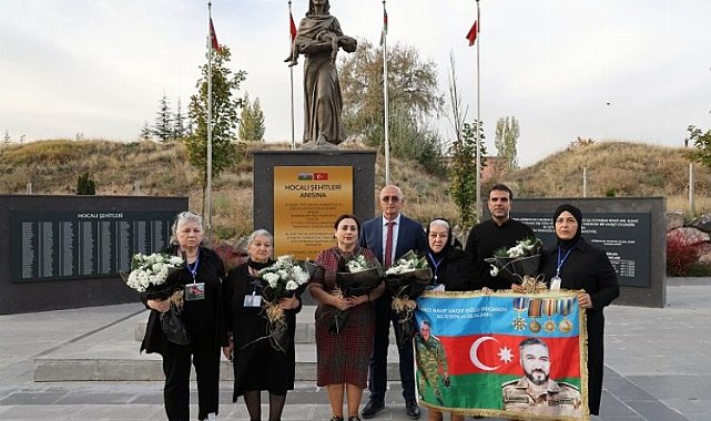 Burada 1992 yılında Ermenistan'ın yaptığı soykırımda hayatını kaybedenler adına oluşturulan Hocalı Anıtı önüne gelen şehit anneleri, saygı duruşunda bulunarak anıta çiçek koydu.