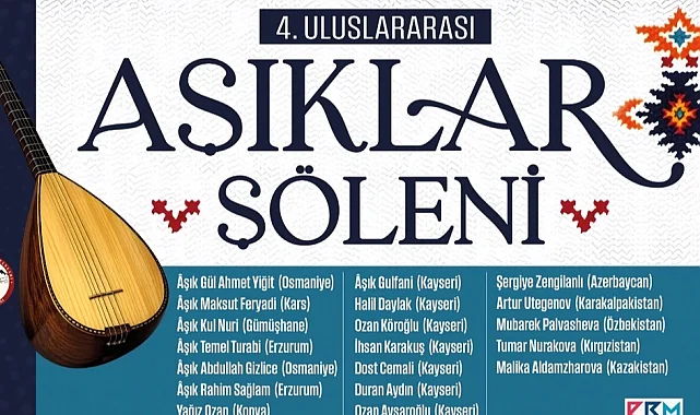 Kayseri Büyükşehir Belediyesi ve Kayseri Valiliği iş birliğinde Kayseri 4. Uluslararası Âşıklar Şöleni düzenleniyor. Bugün saat 19.00'da Erciyes Kültür Merkezi'nde düzenlenecek şölende 7 şehir ve 5 ülkeden âşıklar, Kayserilileri mest edecek.KAYSERİ (İGFA) - Düzenlediği kültür sanat etkinlikleri ile kadim kent Kayseri'nin kültür sanat hayatını daima canlı tutan, kentin kültür sanat birikimine sahip çıkarak gelecek nesillere aktarma gayretini sürdüren Başkan Dr. Memduh Büyükkılıç yönetimindeki Kayseri Büyükşehir Belediyesi, 2027 TÜRKSOY Türk Dünyası Kültür Başkenti adayı olan Kayseri'de, kültür sanat etkinliklerini hız kesmeden sürdürüyor.Bu çerçevede Büyükşehir Belediyesi, Kayseri Valiliği, İl Kültür ve Turizm Müdürlüğü ile Kayseri Halk Ozanları Kültür Derneği iş birliğinde Kayseri 4. Uluslararası Âşıklar Şöleni düzenleniyor. Bugün saat 19.00'da Erciyes Kültür Merkezi Turkuaz Salon'da düzenlenecek ve Kayserililere unutulmaz bir akşam yaşatacak şölene 7 şehir ve 5 ülkeden âşıklar katılacak.Kayseri 4. Uluslararası Âşıklar Şöleni'ne Kayseri'den Âşık Gulfani, Halil Daylak, Ozan Köroğlu, İhsan Karakuş, Dost Cemali, Duran Aydın ve Ozan Avşaroğlu katılacak. Farklı illerden 8 halk ozanının daha katılacağı şölende Osmaniye'den Âşık Gül Ahmet Yiğit ve Âşık Abdullah Gizlice, Kars'tan Âşık Maksut Feryadi, Gümüşhane'den Âşık Kul Nuri, Erzurum'dan Âşık Temel Turabi ve Âşık Rahim Sağlam, Konya'dan Yağız Ozan ve Adana'dan Âşık Yemliha sazları ve sözleri ile katılımcıları mest edecek.Türk Cumhuriyetleri'nden de halk ozanlarının sanatlarını sergileyeceği şölene Azerbaycan'dan Şergiye Zengilanlı, Karakalpakistan'dan Artur Utegenov, Özbekistan'dan Mubarek Palvasheva, Kırgizistan'dan Tumar Nurakova, Kazakistan'dan Malika Aldamzharova katılacak.2027 TÜRKSOY Türk Dünyası Kültür Başkenti adayı Kayseri, 4. Uluslararası Âşıklar Şöleni ile unutulmaz bir akşam yaşayacak.