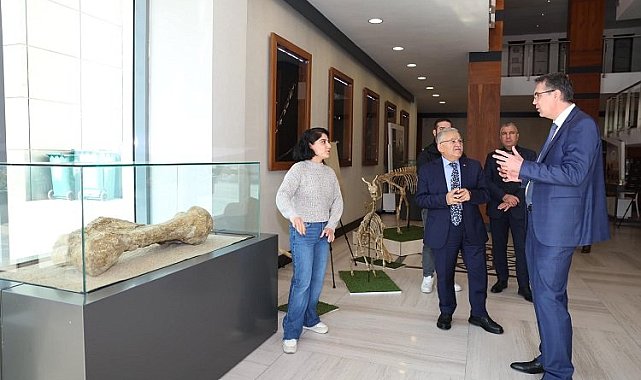 Kayseri Bölge Adliye Mahkemesi Başsavcısı Burhan Bölükbaşı, Büyükşehir Belediye Başkanı Dr. Memduh Büyükkılıç'a nezaket ziyaretinde bulundu.Başkan Büyükkılıç, Başsavcı Bölükbaşı'ya, Büyükşehir Belediyesi Başkanlık girişinde, dünya jeoloji tarihine ışık tutan 7,5 milyon yıllık fosillerin ayaklandırma çalışmalarının yer aldığı sergiyi gezdirdi.Bölükbaşı, 7,5 milyon yıllık fosillerin sergisini ilgiyle inceleyerek, çalışmalar hakkında bilgiler aldı. Daha sonra sıcak ve samimi ortamda makamda gerçekleşen görüşmede Başkan Büyükkılıç, ziyaretten duyduğu memnuniyeti dile getirerek, nazik ziyaretleri için Başsavcı Bölükbaşı'ya teşekkür etti. Büyükkılıç, "Belediyemizde misafir ettiğimiz Kayseri Bölge Adliye Mahkemesi Cumhuriyet Başsavcısı Sayın Burhan Bölükbaşı ile birlikte Büyükşehir Belediyesi Fuaye Alanı'nda sergilenen 7,5 milyon yıllık fosilleri inceledik. Nazik ziyaretleri için Sayın Başsavcımıza teşekkür ederim" dedi.Kayseri Bölge Adliye Mahkemesi Başsavcısı Burhan Bölükbaşı da Başkan Büyükkılıç'a misafirperverliğinden dolayı teşekkür etti.