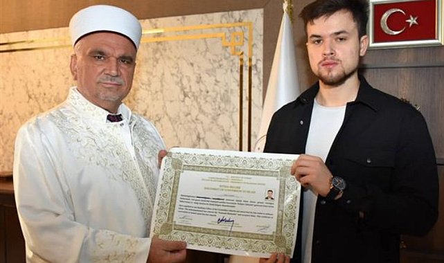 Aslen Kazakistanlı olan Nikita Kılımov, Bilecik İl Müftülüğünde düzenlenen törende Kelime-i Şehadet getirerek Müslüman oldu.BİLECİK (İGFA) - Bilecik Şeyh Edebali Üniversitesinde öğrenim gören Kazakistanlı asıllı Nikita Kılımov, yapmış olduğu araştırmalar neticesinde Müslüman olmak istediğini belirterek Bilecik İl Müftülüğüne başvurdu.Müftülük makamında düzenlenen ihtida töreninde İl Müftüsü Ali Erhun, Kılımov'a İslam dininin temel esasları hakkında bilgi verdi. Sonrasında Nikita Kılımov Kelime-i Şehadet getirerek Müslüman oldu.İl Müftüsü Erhun İslam'ın barış, esenlik ve huzur dini olduğunu, insanlara huzur ve saadet getirdiğini anlatarak, Müslüman olma kararı veren Nikita Kılımov'a ihtida belgesini takdim etti.Ayrıca Müftü Ali Erhun, Kur'an-ı Kerim, İlmihal ve Diyanet İşleri Başkanlığı yayınlarından çıkan çeşitli kitaplar hediye etti.