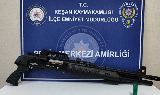 Edirne'nin Keşan ilçesinde asker eğlencesi sırasında havaya ateş eden bir şahıs gözaltına alındı.Erdoğan DEMİR / EDİRNE (İGFA) - Alınan bilgiye göre olay, Keşan'ın İstasyon Mahallesi'nde meydana geldi.Asker eğlencesi sırasında bir şahsın havaya ateş ettiği ihbarı üzerine olay yerine polis ekipleri sevk edildi.Polis ekipleri tarafından yapılan kontrolde, havaya ateş eden şahsın M.C.D. olduğu tespit edildi. M.C.D.'nin elinde bulunan pompalı tüfek ve şüpheli şahıs muhafaza altına alınarak Keşan Polis Merkezi'ne götürüldü.Polis merkezinde yapılan incelemede, pompalı tüfek içerisinde bir adet dolu fişek olduğu görüldü.Olayla ilgili adli tahkikat başlatıldı.