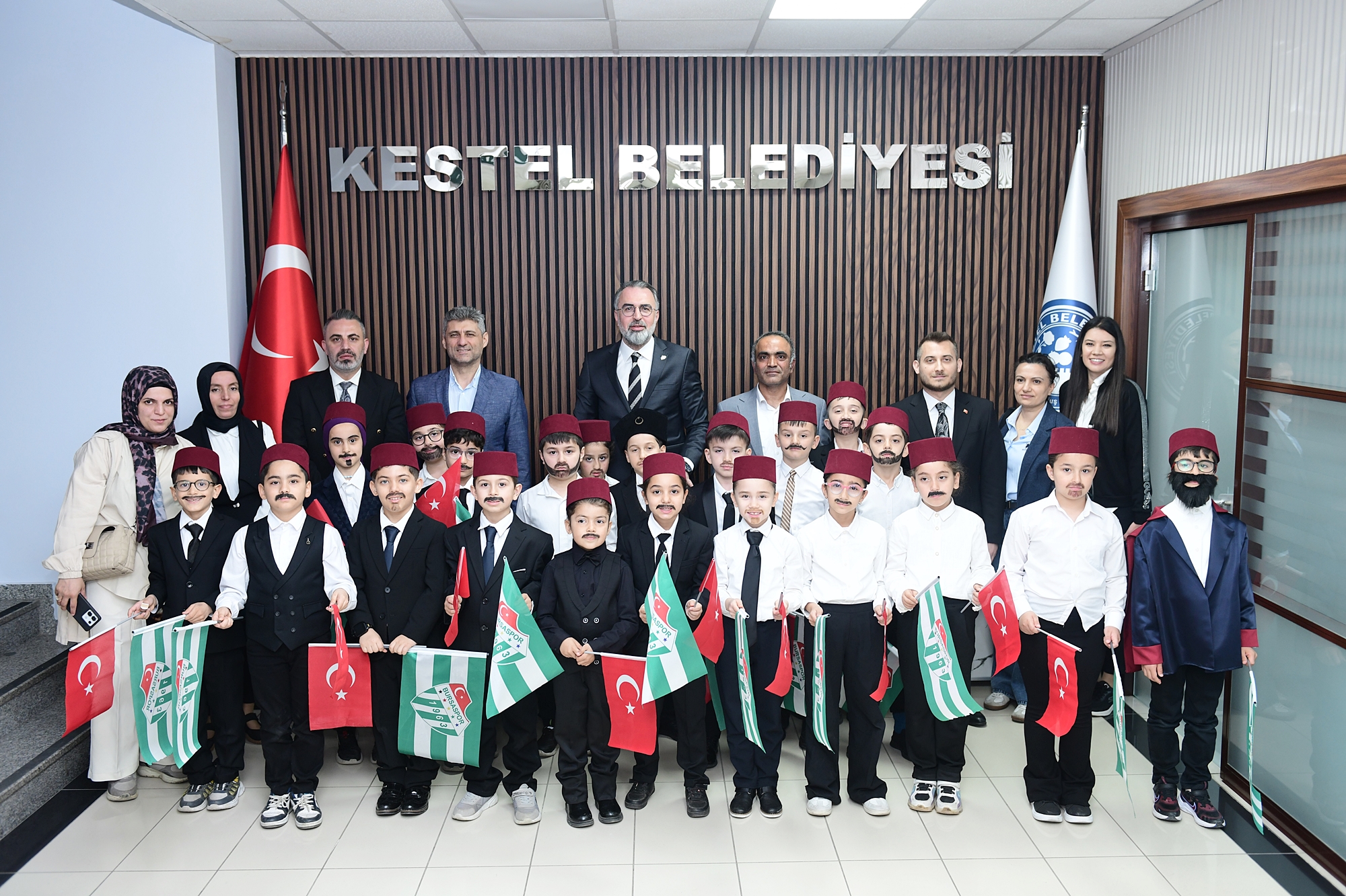 Gösterilerin ardından öğrencilerle yakından ilgilenen Kestel Belediye Başkanı Ferhat Erol, çocuklarla sohbet ederek 23 Nisan sevincine ortak oldu. Miniklerle hatıra fotoğrafları çektiren Başkan Erol, etkinlik sonunda öğrencilere Bursaspor bayrağı ve çeşitli hediyeler takdim etti.